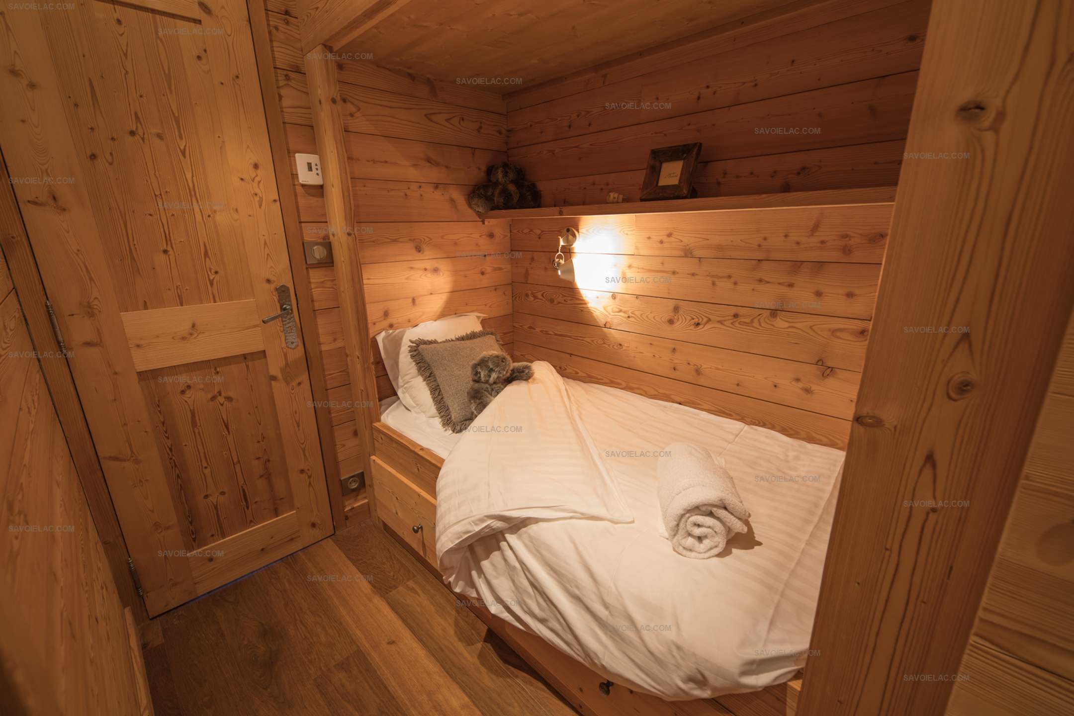 Bedroom 4: double bed 160 cm + 2 single beds of 90 cm in alcove Bathroom 3: shower, sink, towel dryer.