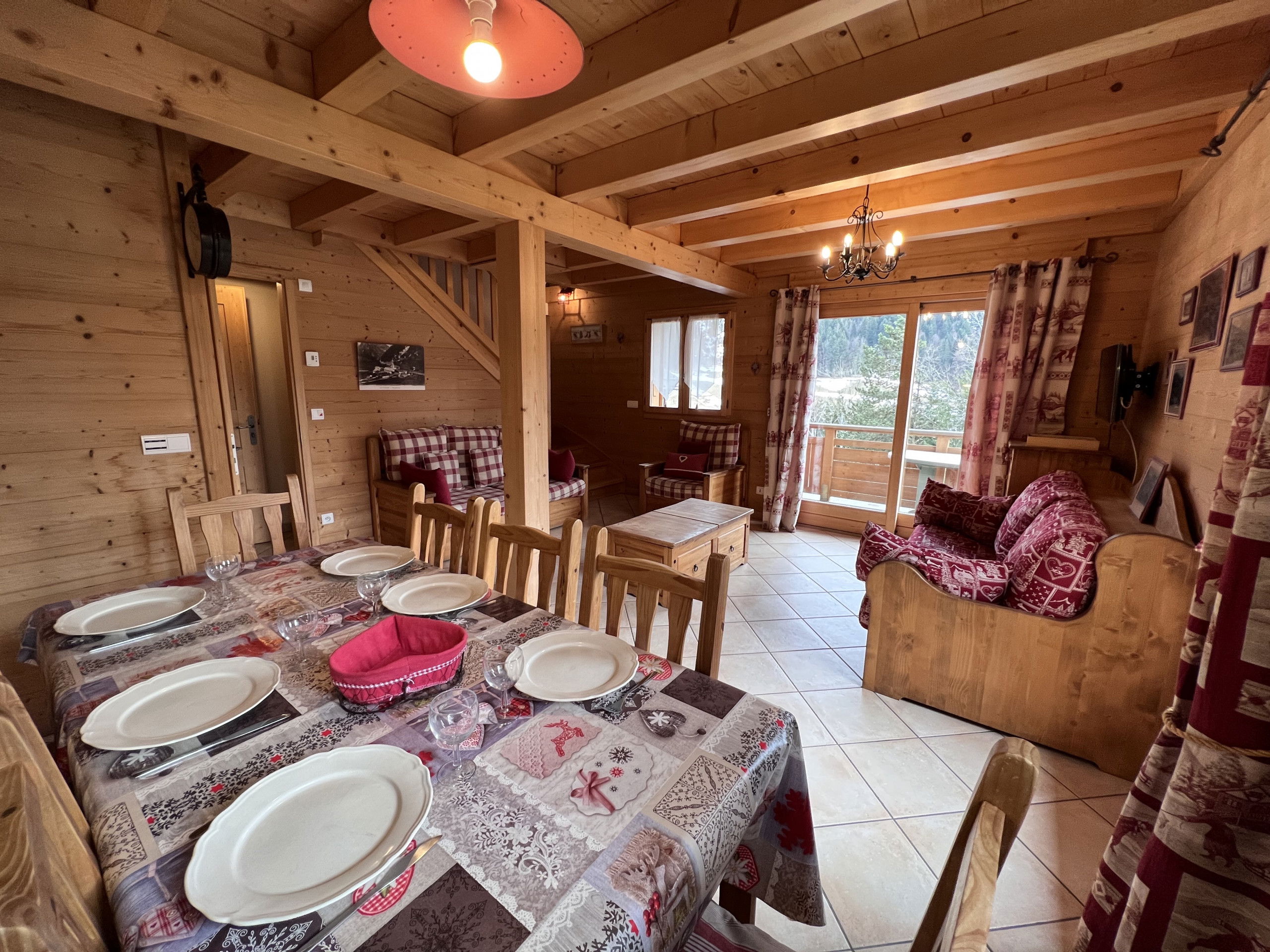 Half chalet 650 m from the village center. Built in 2006. It has the charm of our Savoyard chalets, beautiful and well thought out, you will spend a pleasant holiday. It is located in the Confins Valley, at a place called La Grallière. At about 500 meters from the track La Balme / Bossonnet. Easy access to the village with the car or shuttles, there is a stop 20 meters from the chalet. Quiet with good exposure and a beautiful view of the Chaine des Aravis.