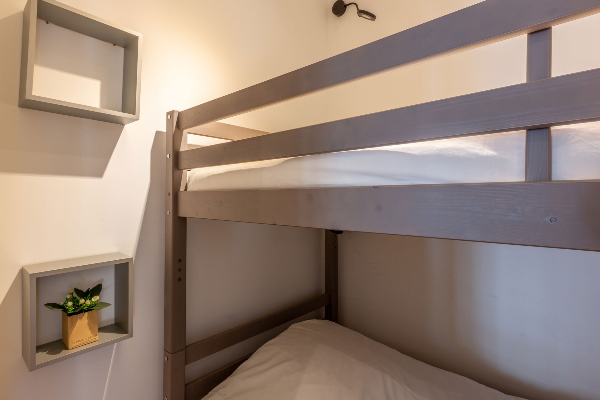 - SLEEPING CORNER (3.29 m²) : 2 BUNK BEDS (90) -> upper bed forbidden 6 years old