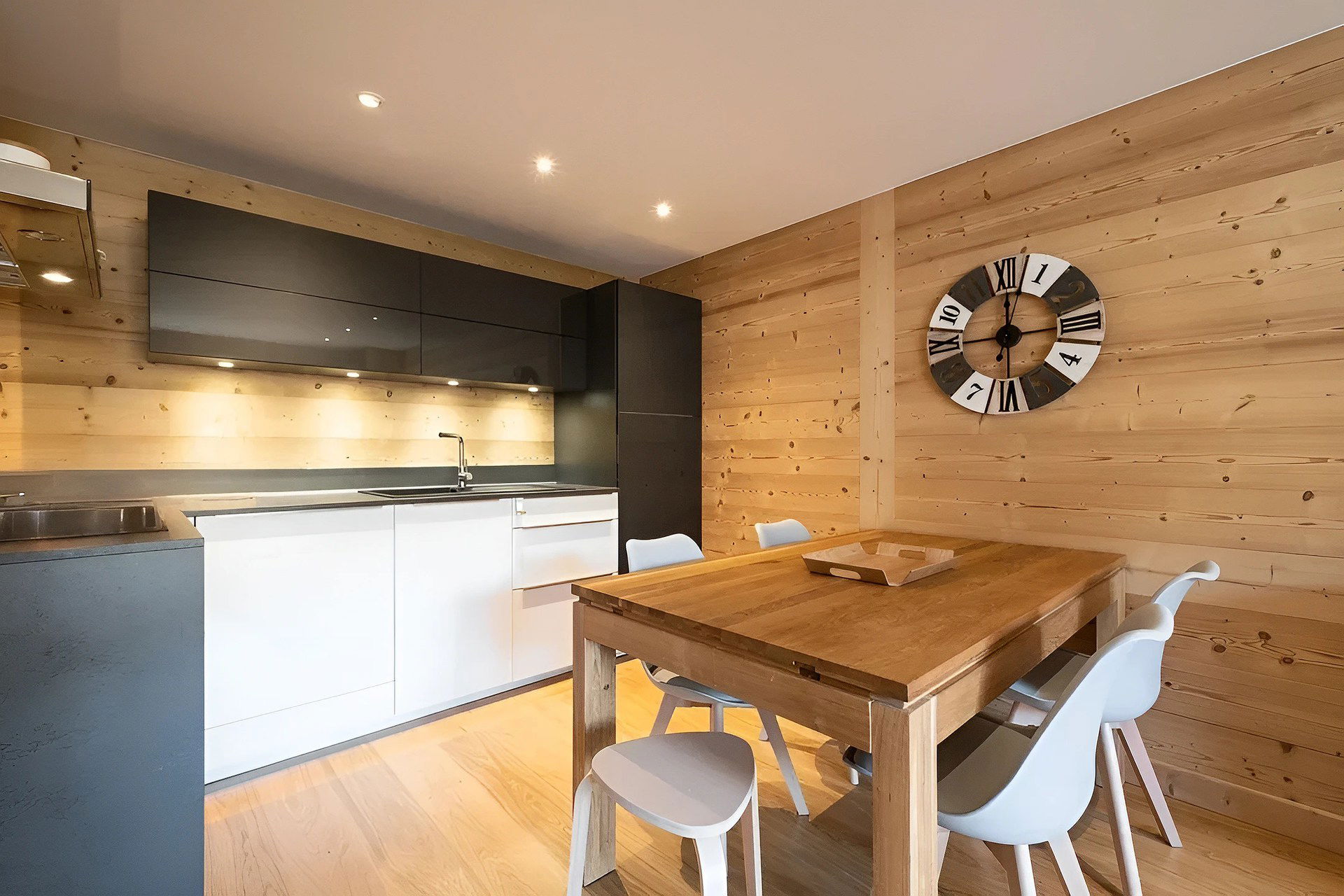 Equipment: Induction hobs, oven, microwave, dishwasher, refrigerator-freezer, raclette machine, fondue set.