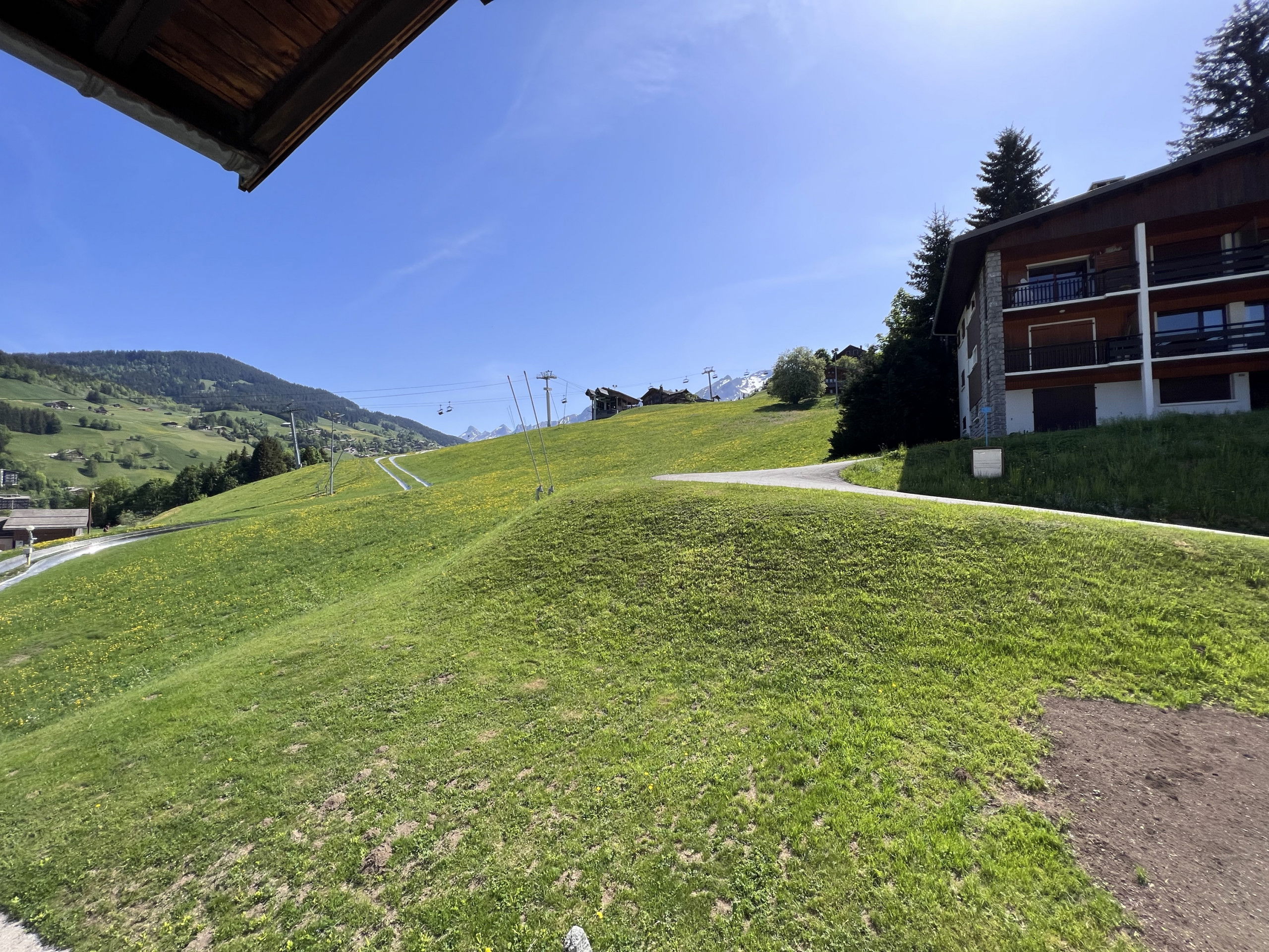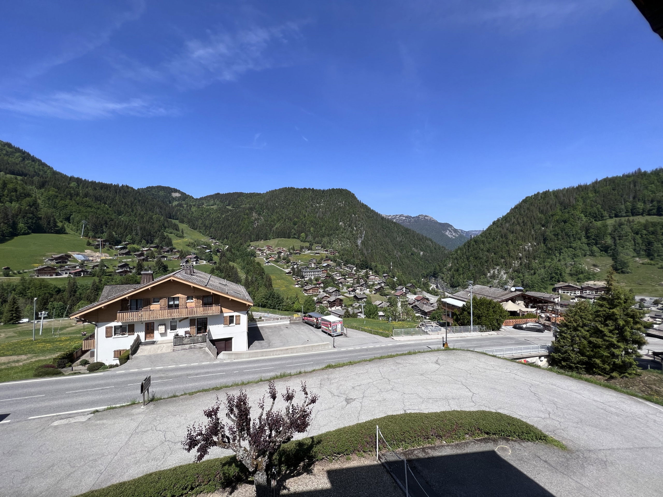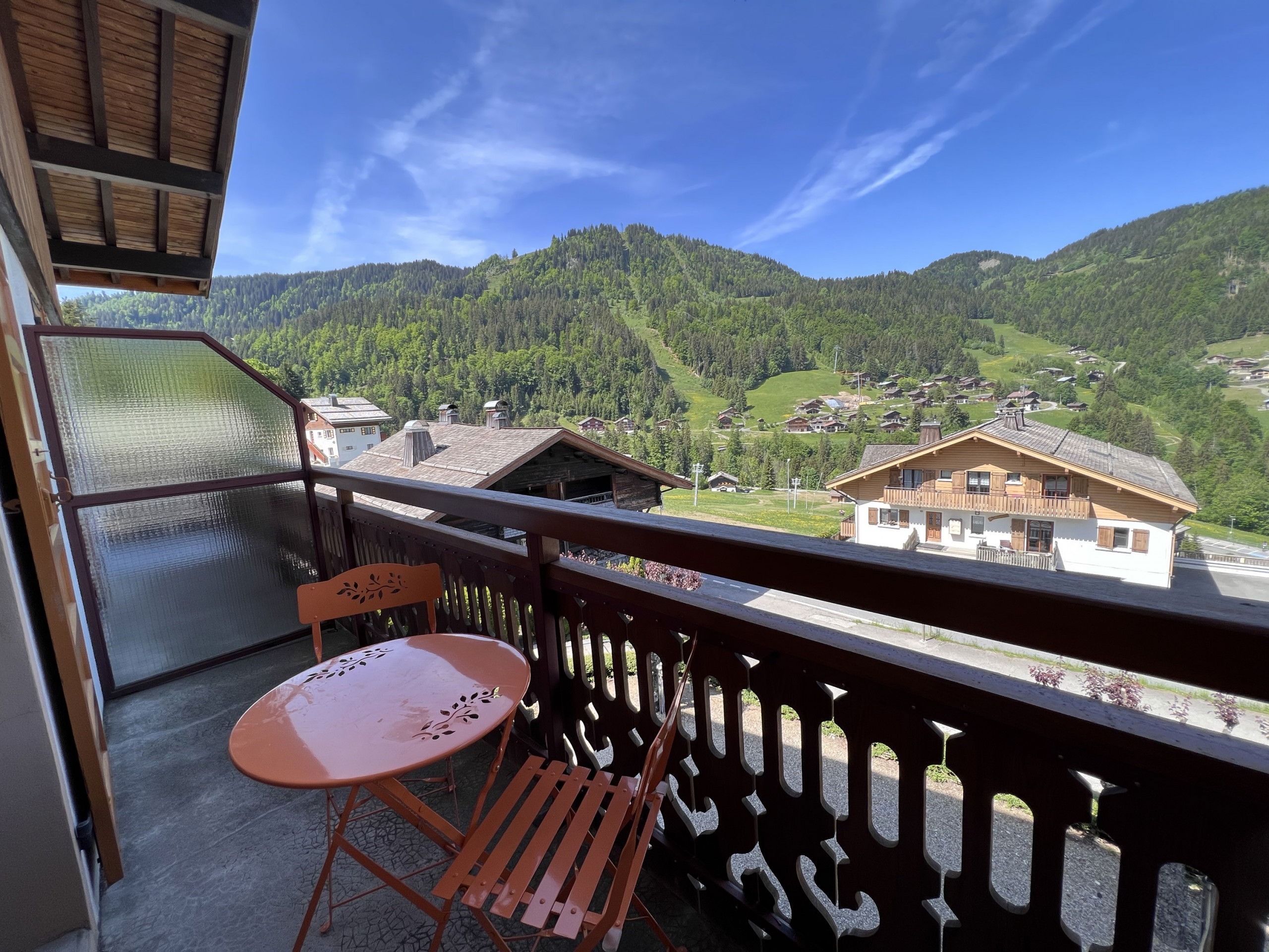 The apartment is located in a chalet with 4 apartments, ideally situated towards the Col des Aravis, 550m from shops and 900m from the village centre, on the edge of the Crêt du Merle ski slope. Ski departure and return on foot.