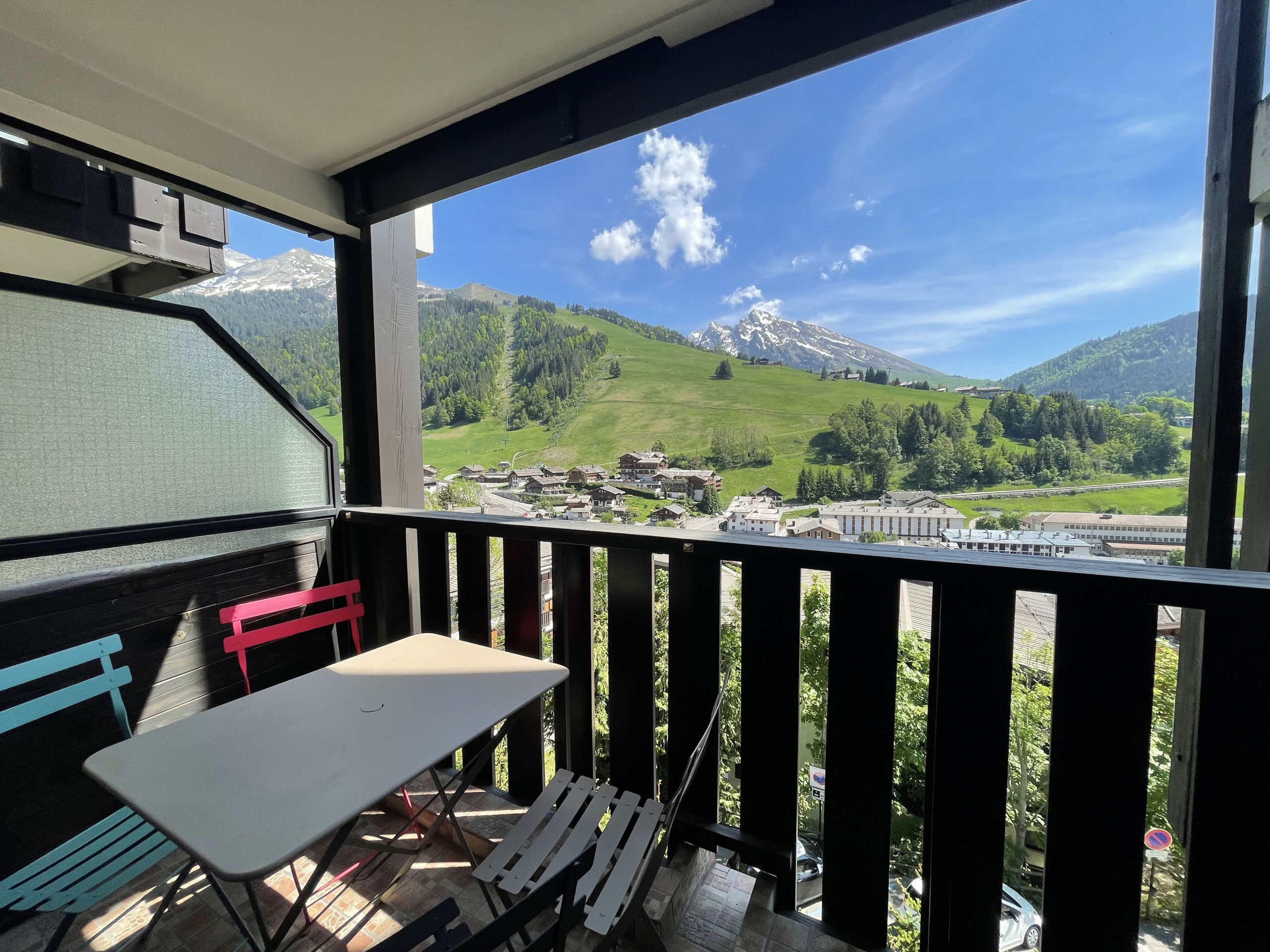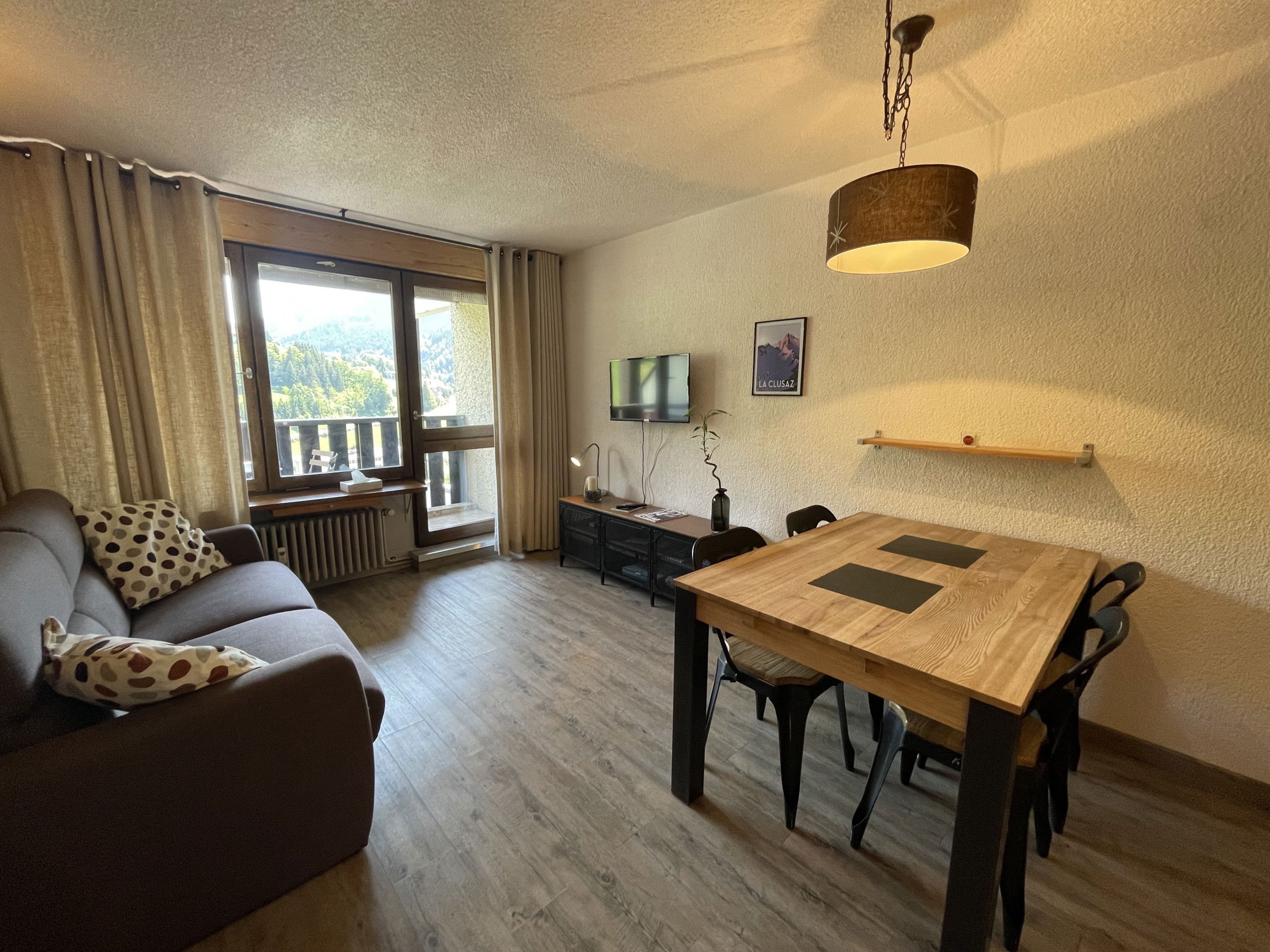 In a residence of 30 apartments on the raised ground floor with balcony, built in 1971, located 500 m from La Clusaz centre (5 min walk) and 800 m from ski lift departures (Télémix, Bossonnet Chairlift and ESF lesson departures). Beautiful view of the village, mountains and ski slopes. Shuttles 50 m away.