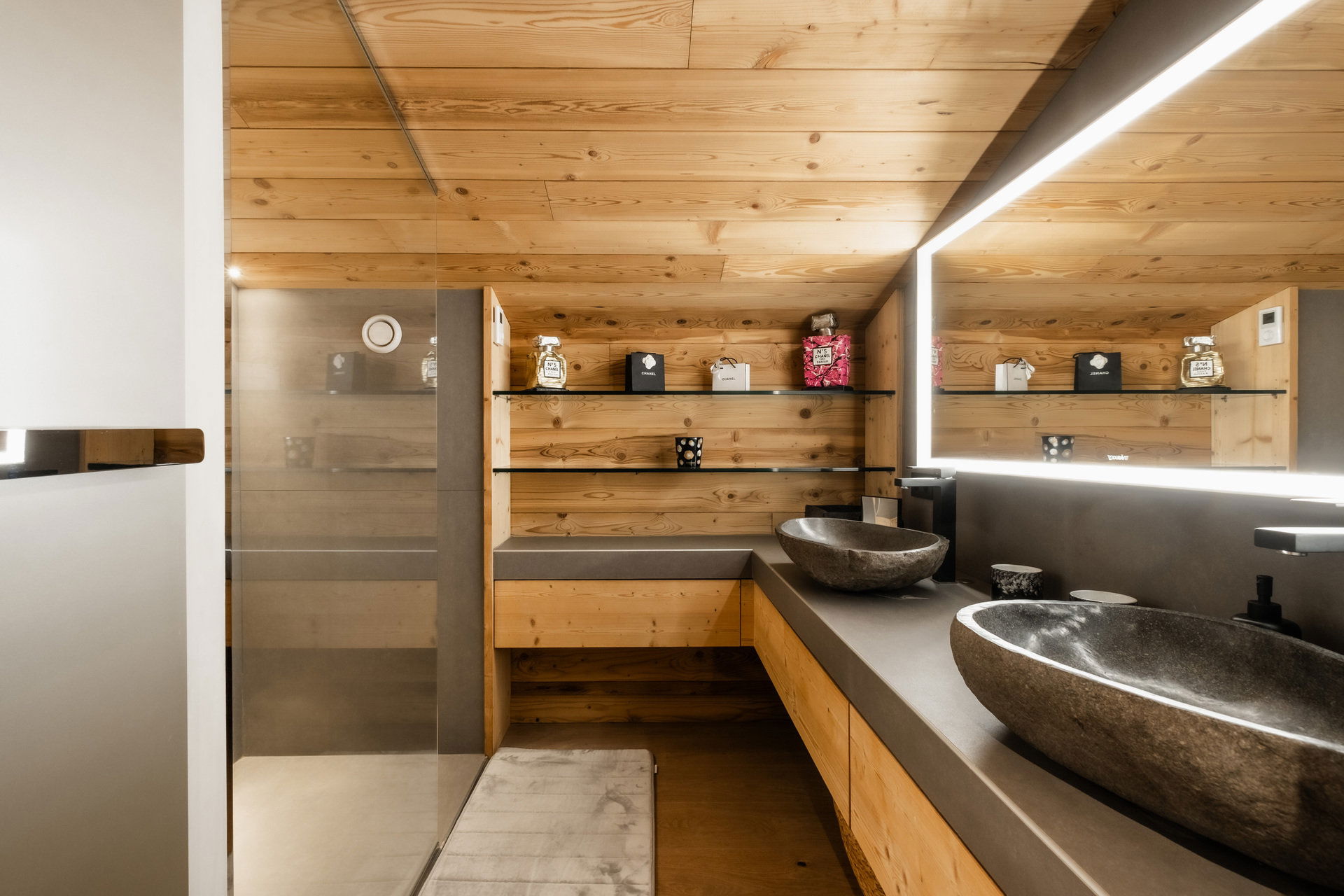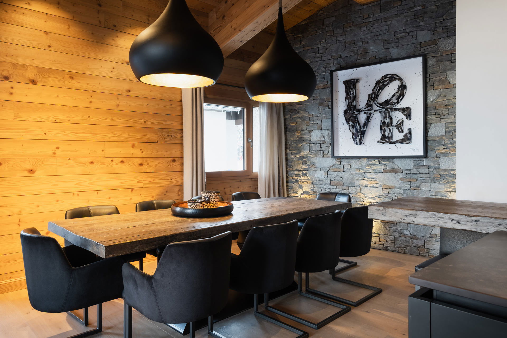 Outside, the south-east facing balcony invites you to enjoy breakfast in the morning sun or relax at the end of the day while taking in the mountain views. It also offers a lovely setting to admire the illuminated village at night.