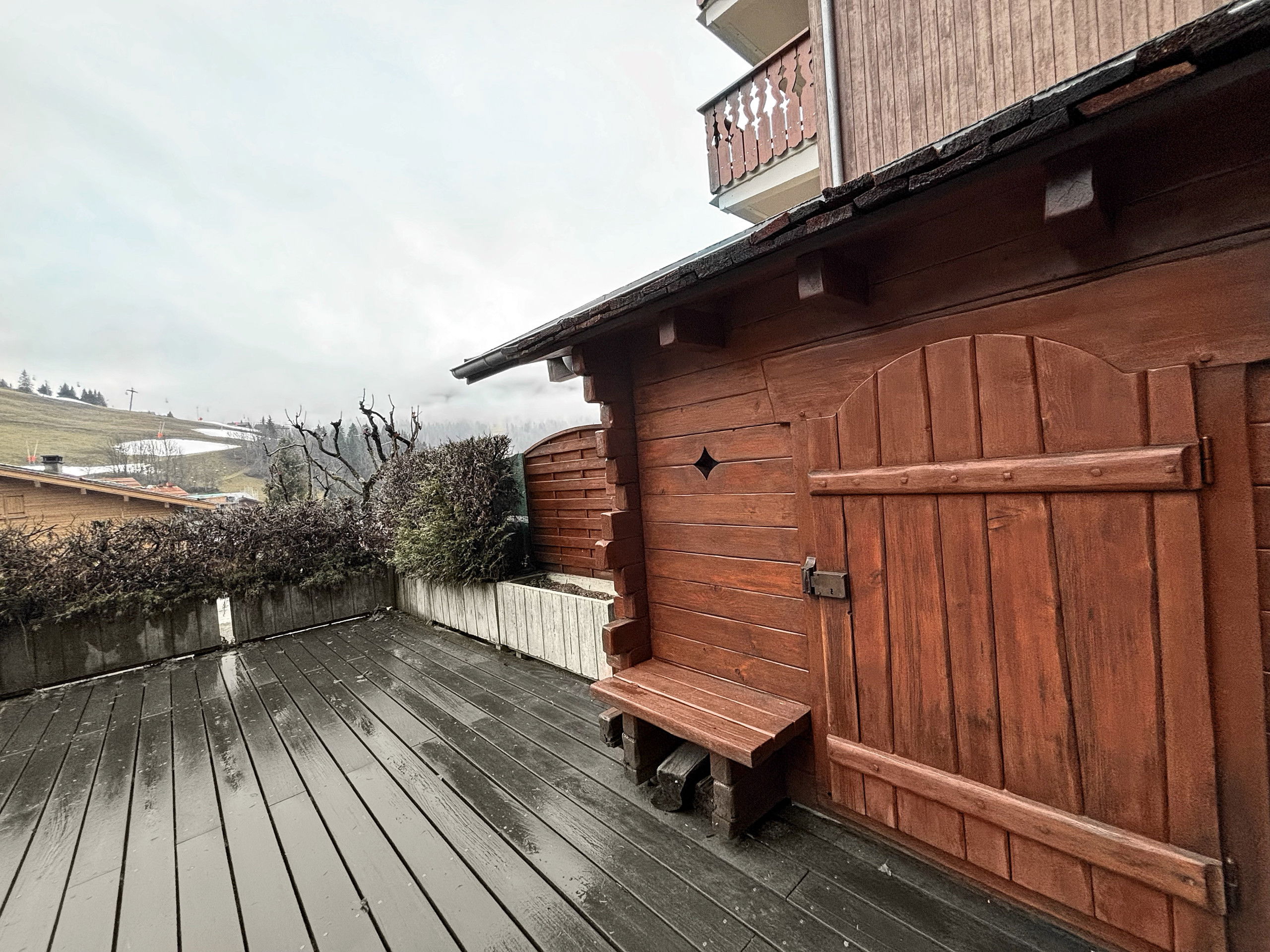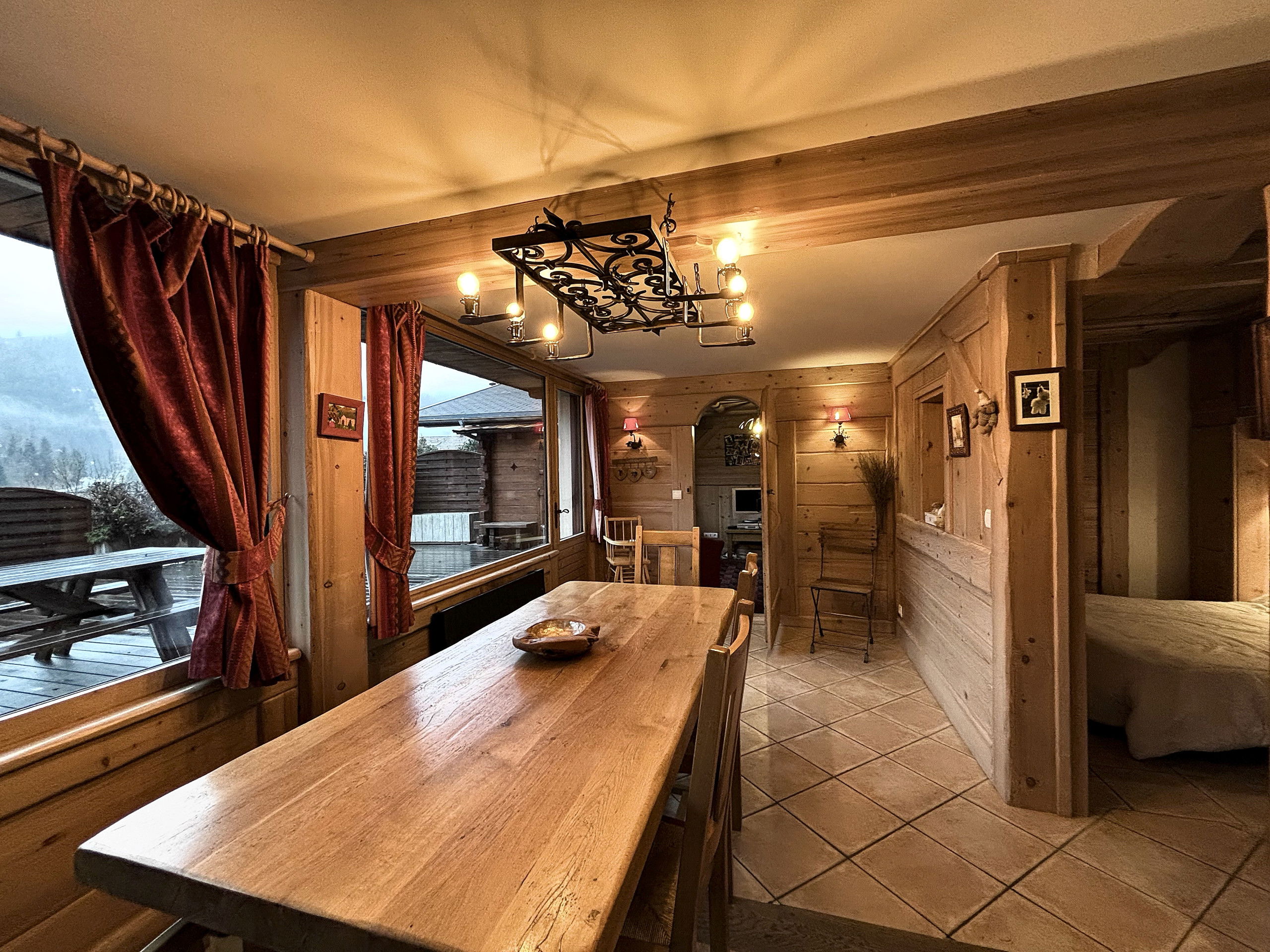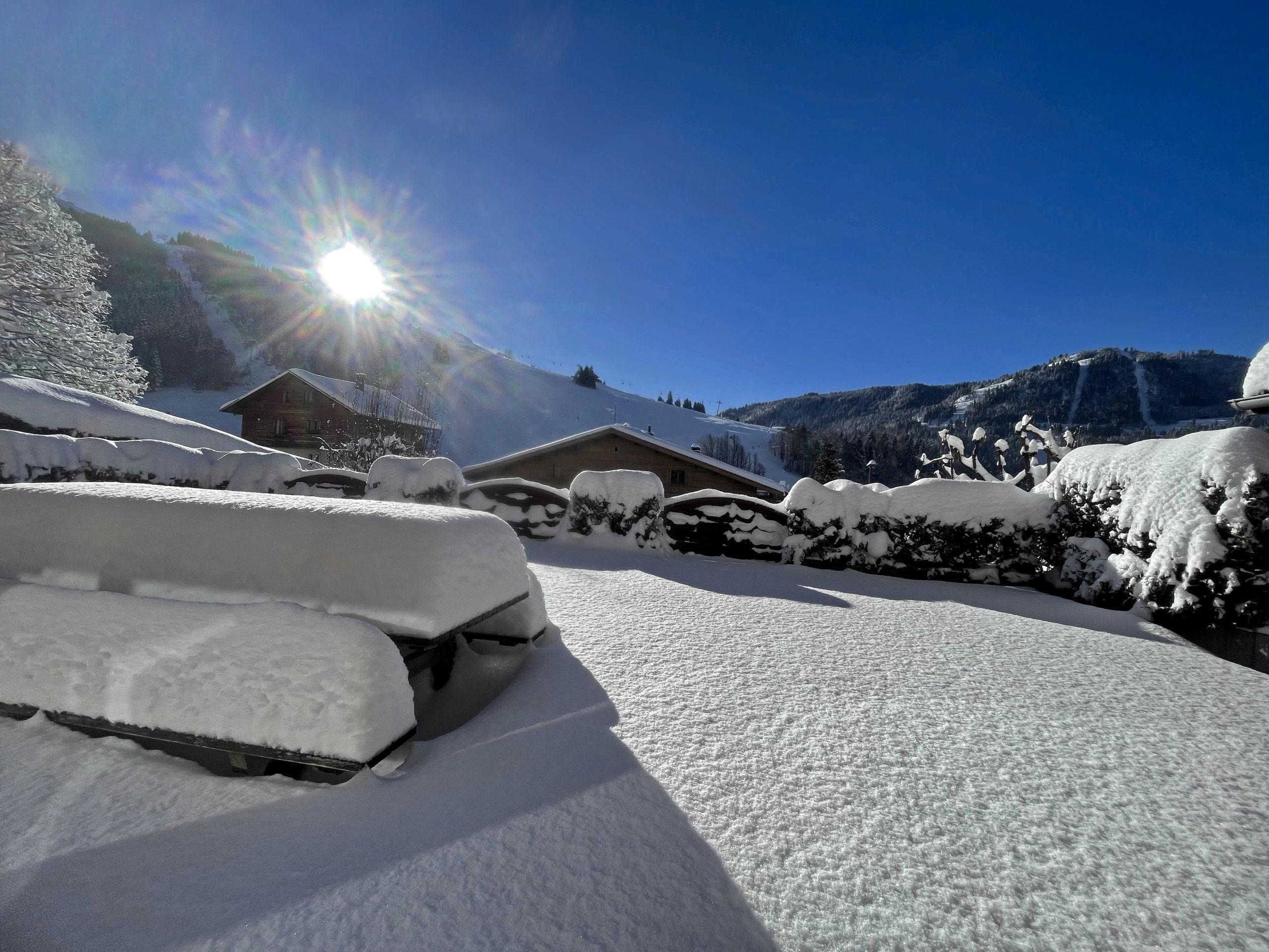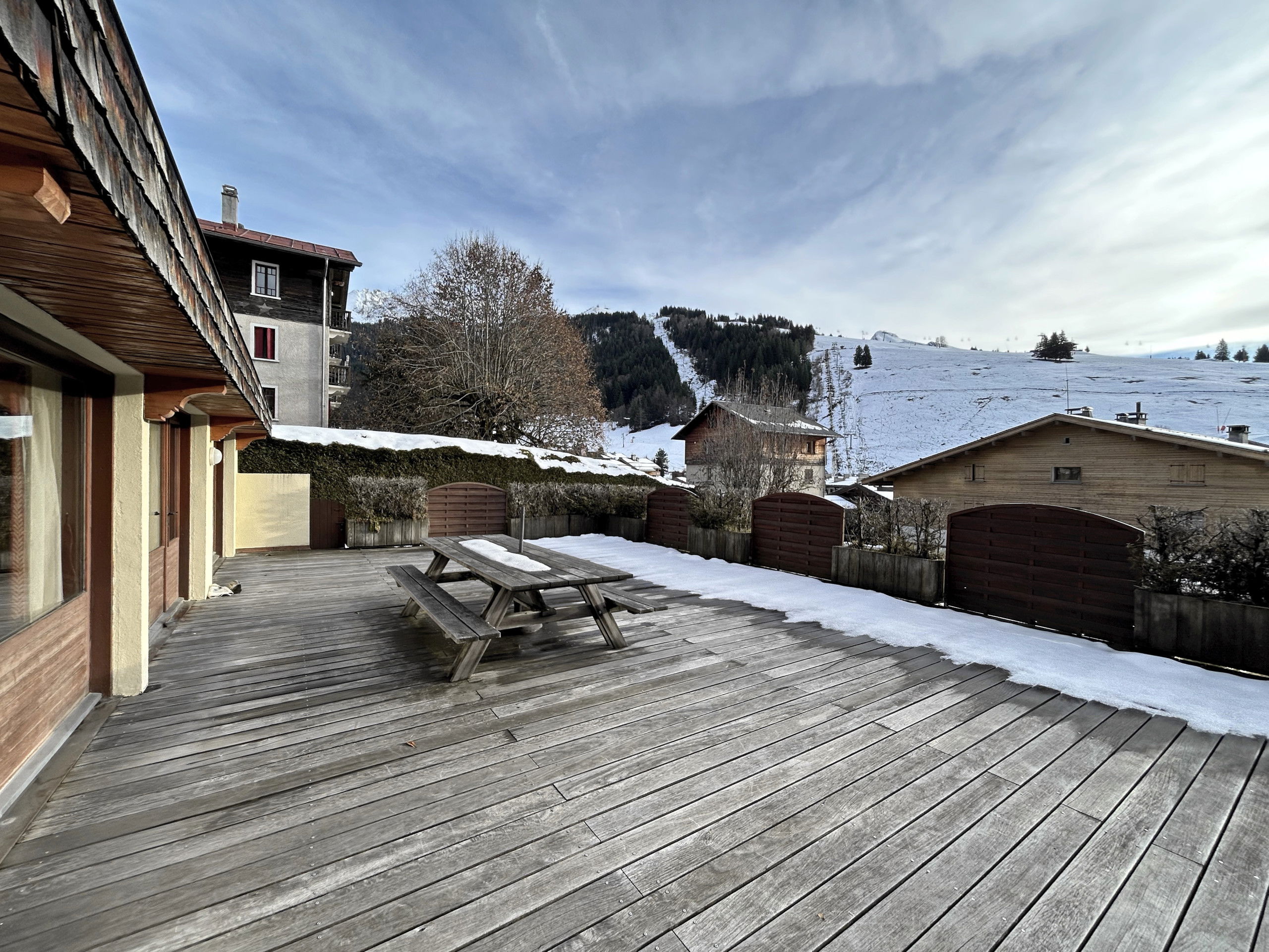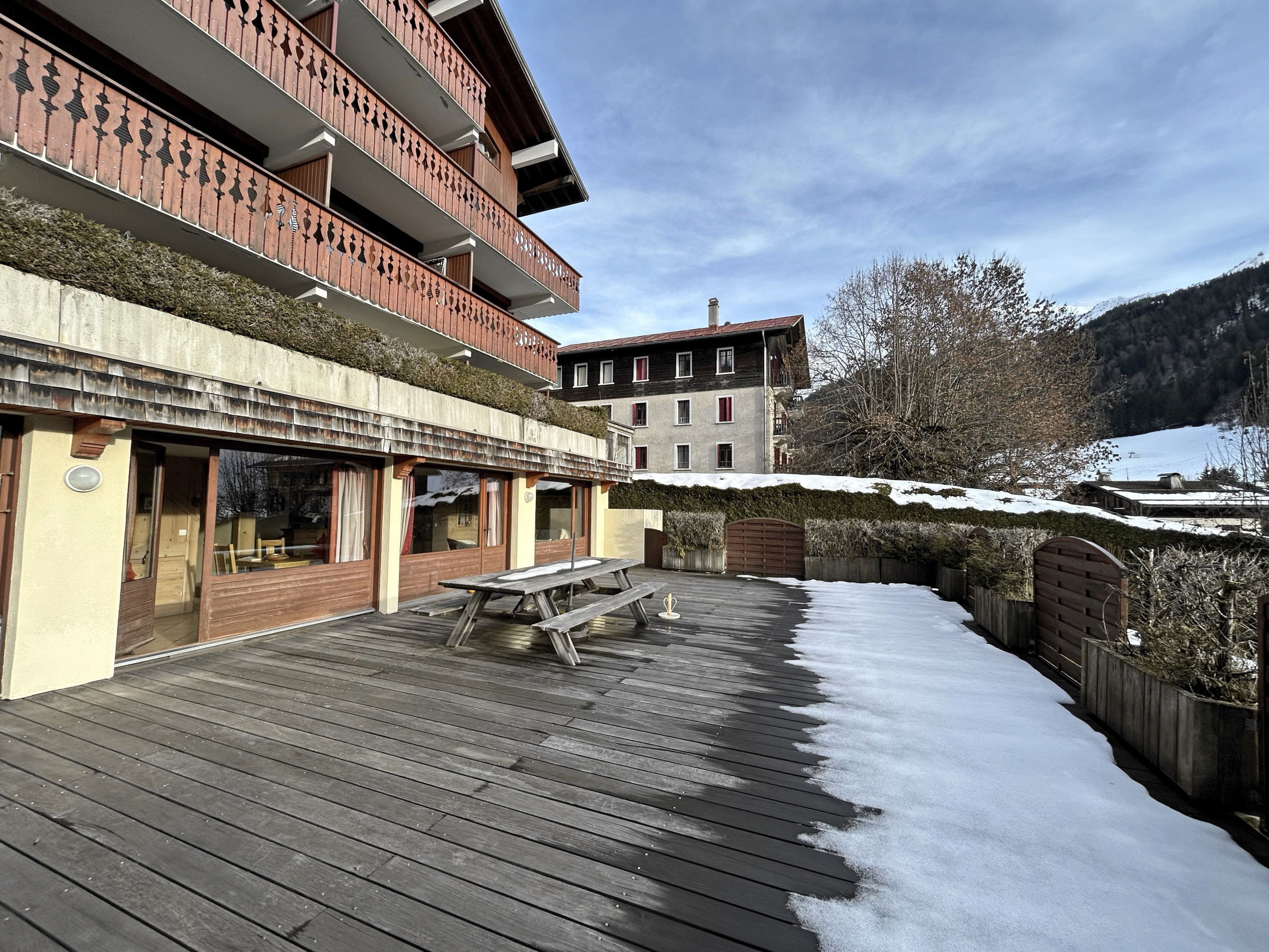 Apartment on the ground floor of a chalet (1988) with 15 apartments located 250 metres from the Bossonnet ski lift, 100m from the centre. View of the Beauregard Massif and the Needle. Shuttles nearby.