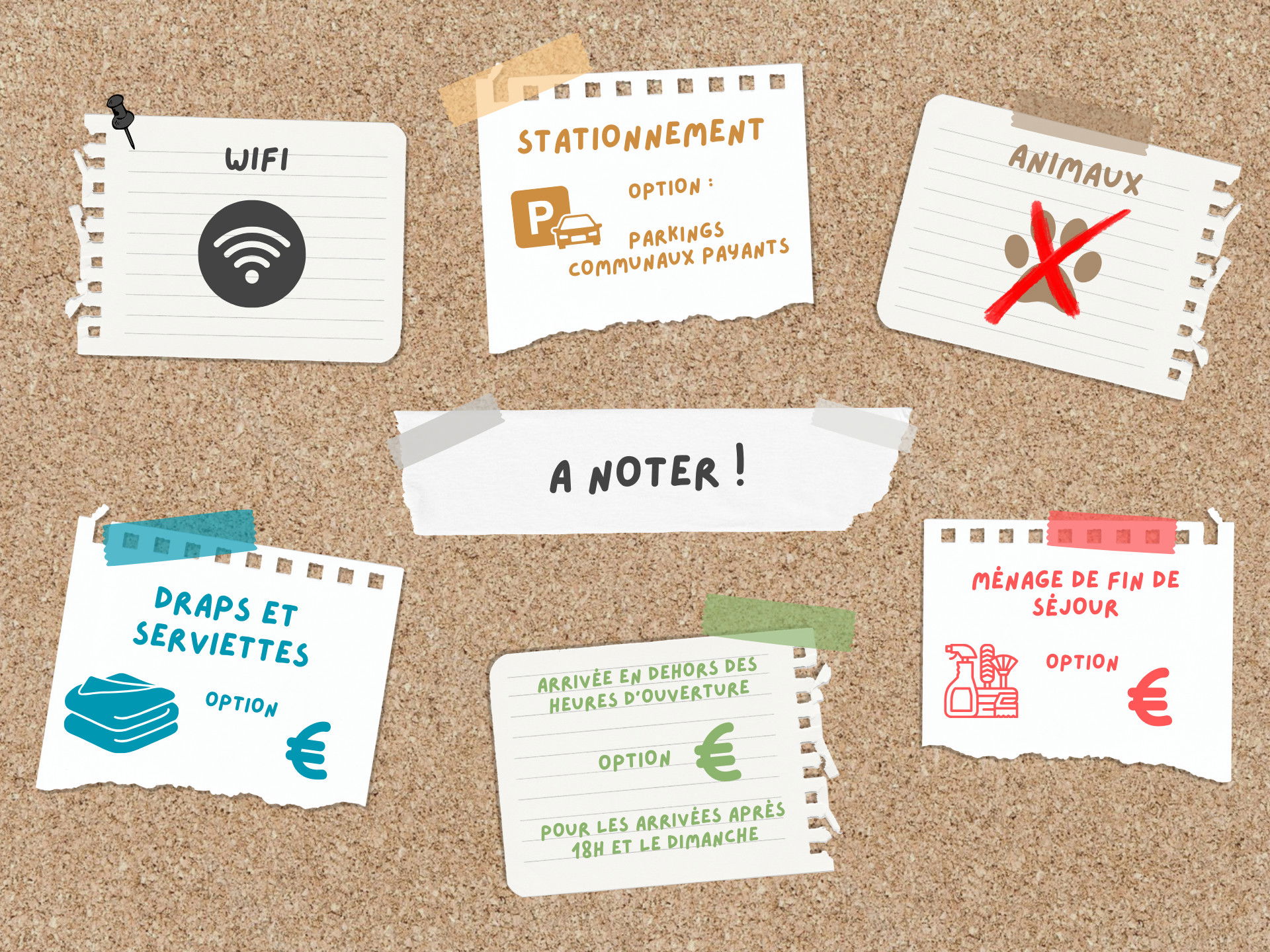 - Rental of sheets, pillowcases, towels, bath mats, tea towels: email sent 20 days before arrival to order linen (order to be placed no later than 10 days before arrival).