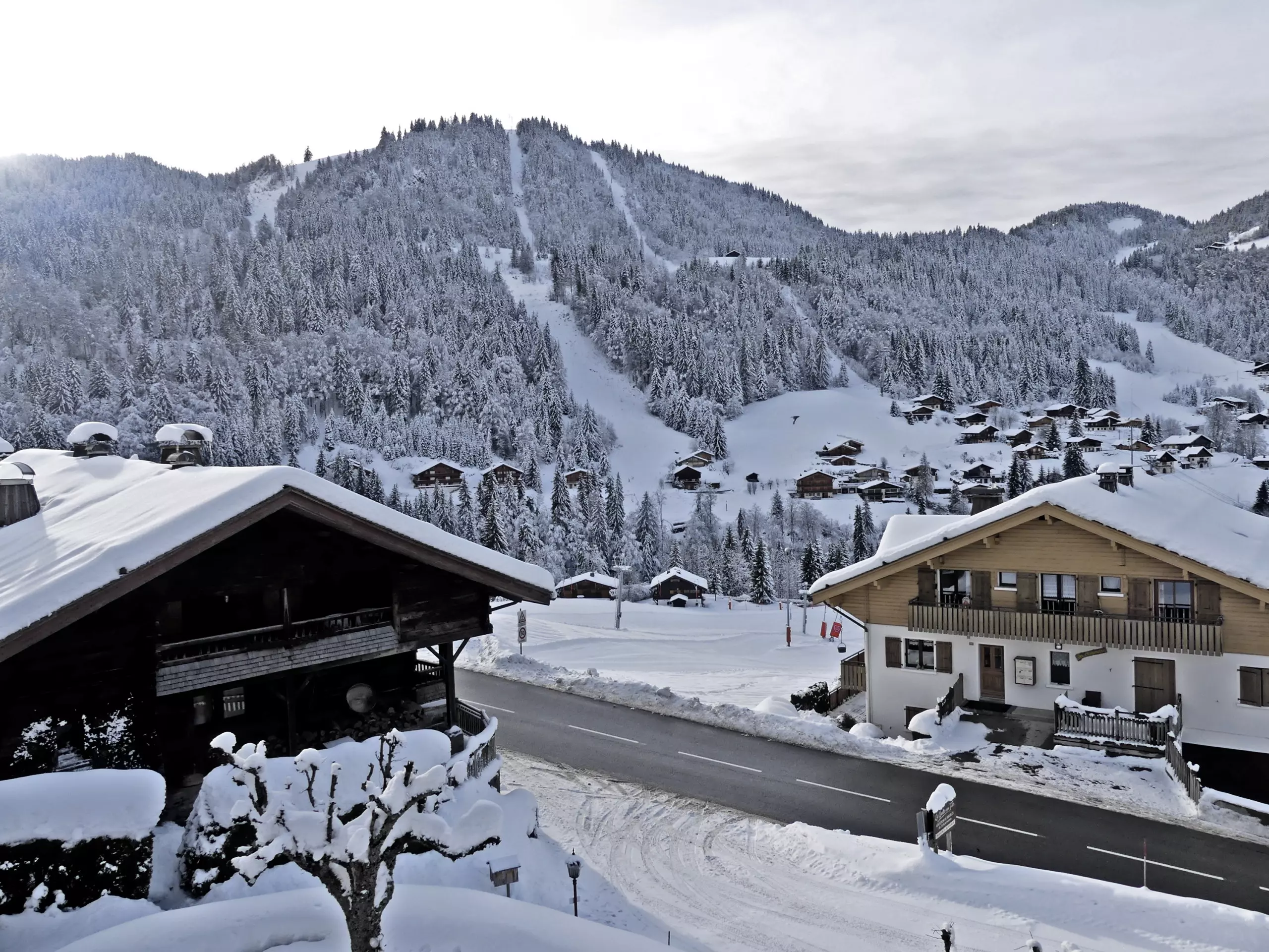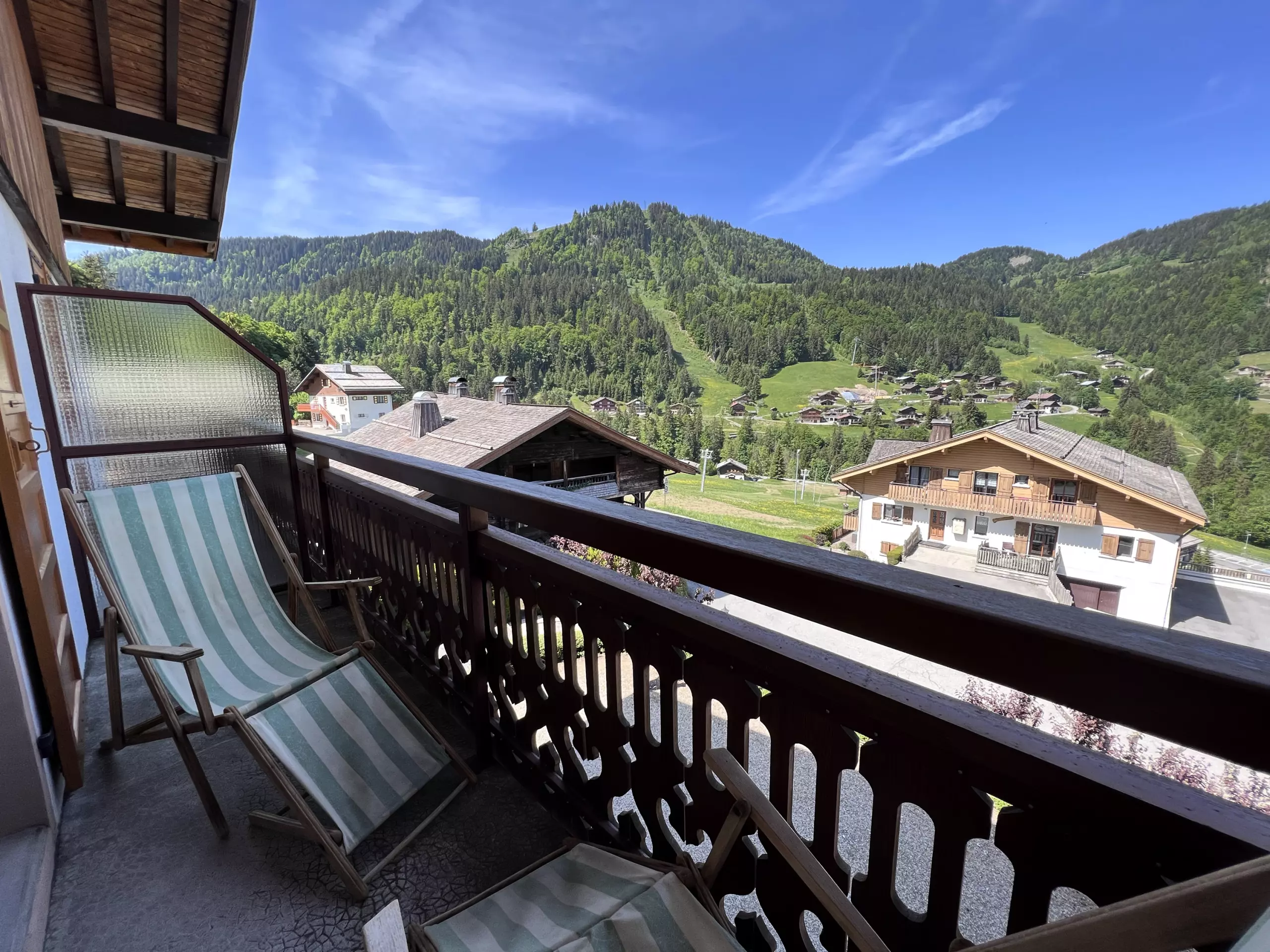 The apartment is located in a four-unit chalet, ideally located towards the Col des Aravis, 550m from the shops and 900m from the village center, on the edge of the Crêt du Merle slope. Departure and return on skis.
