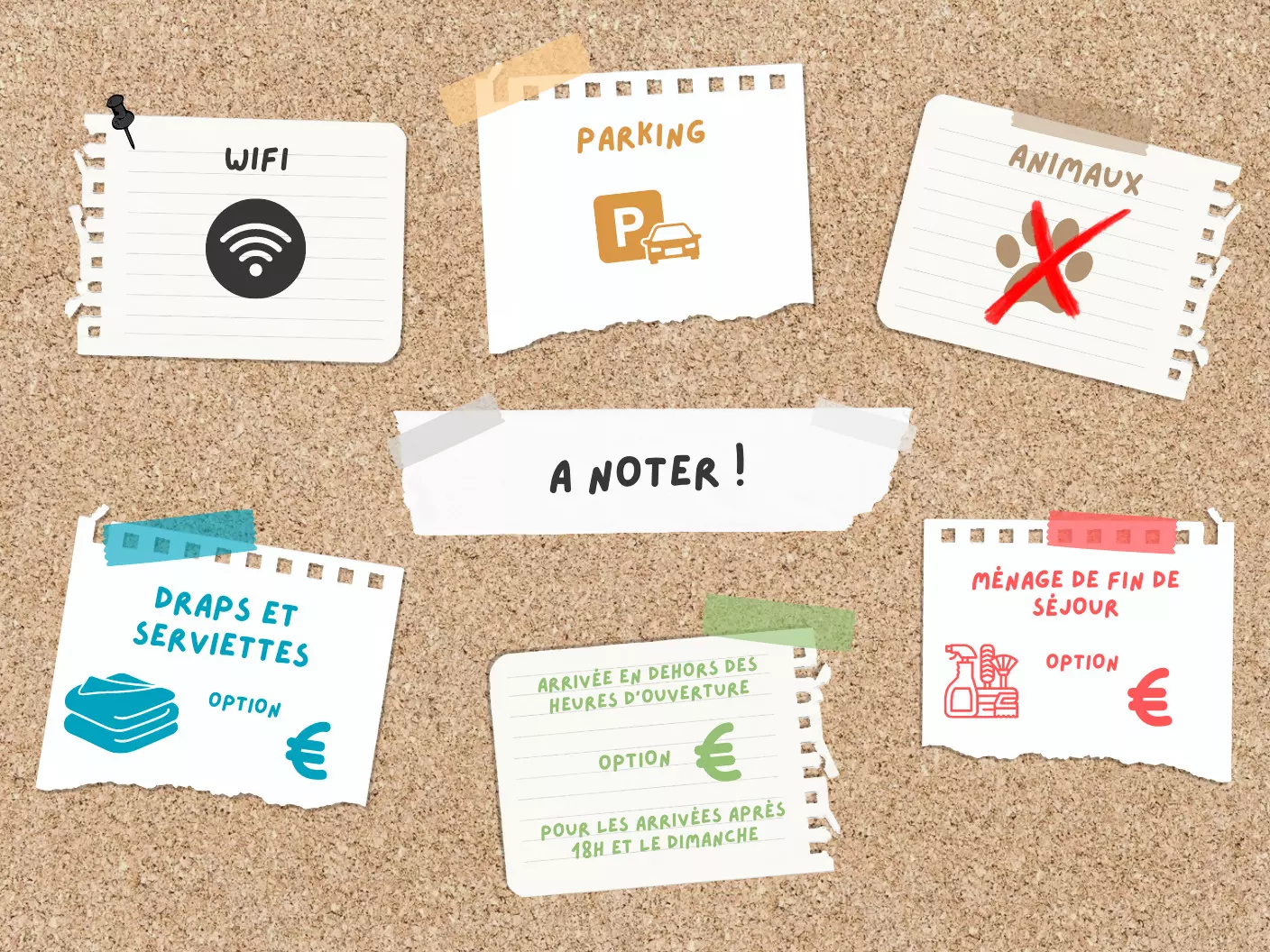 - Rental of sheets, pillowcases, towels, bath mats, tea towels: email sent 20 days before arrival to order linen (order to be placed at the latest 10 days before arrival).