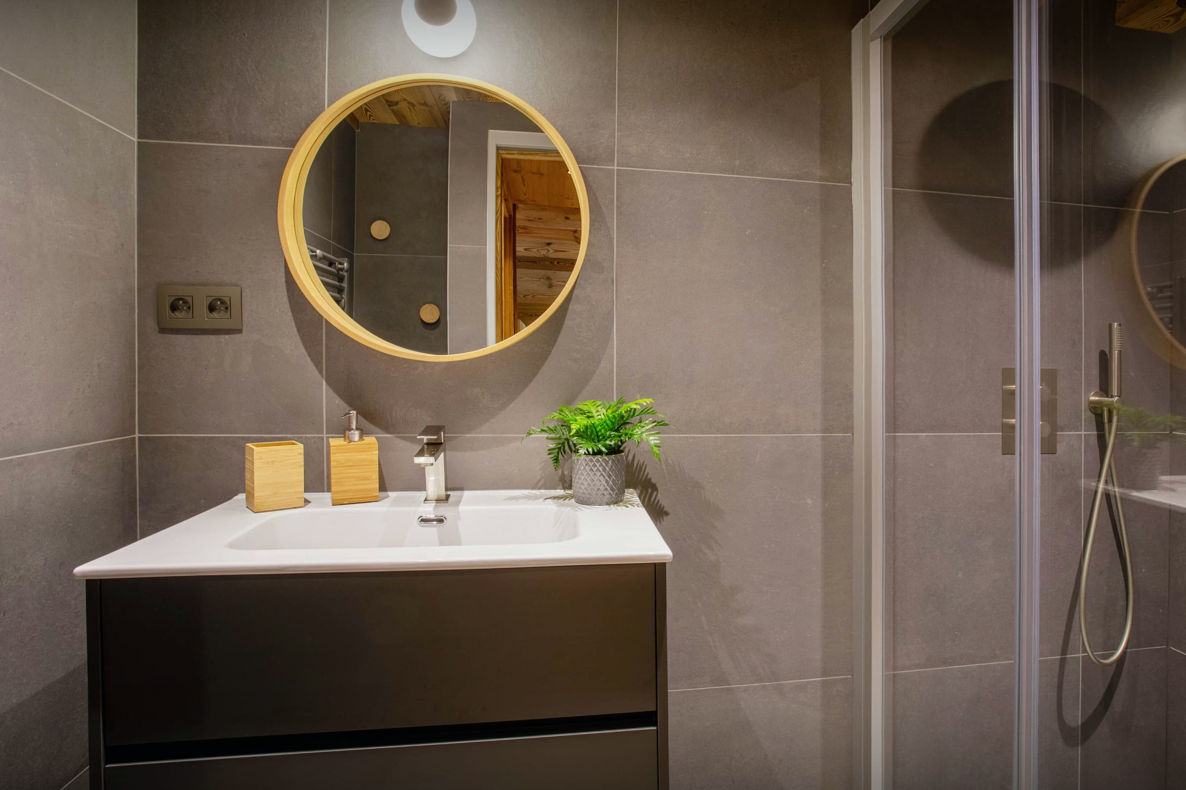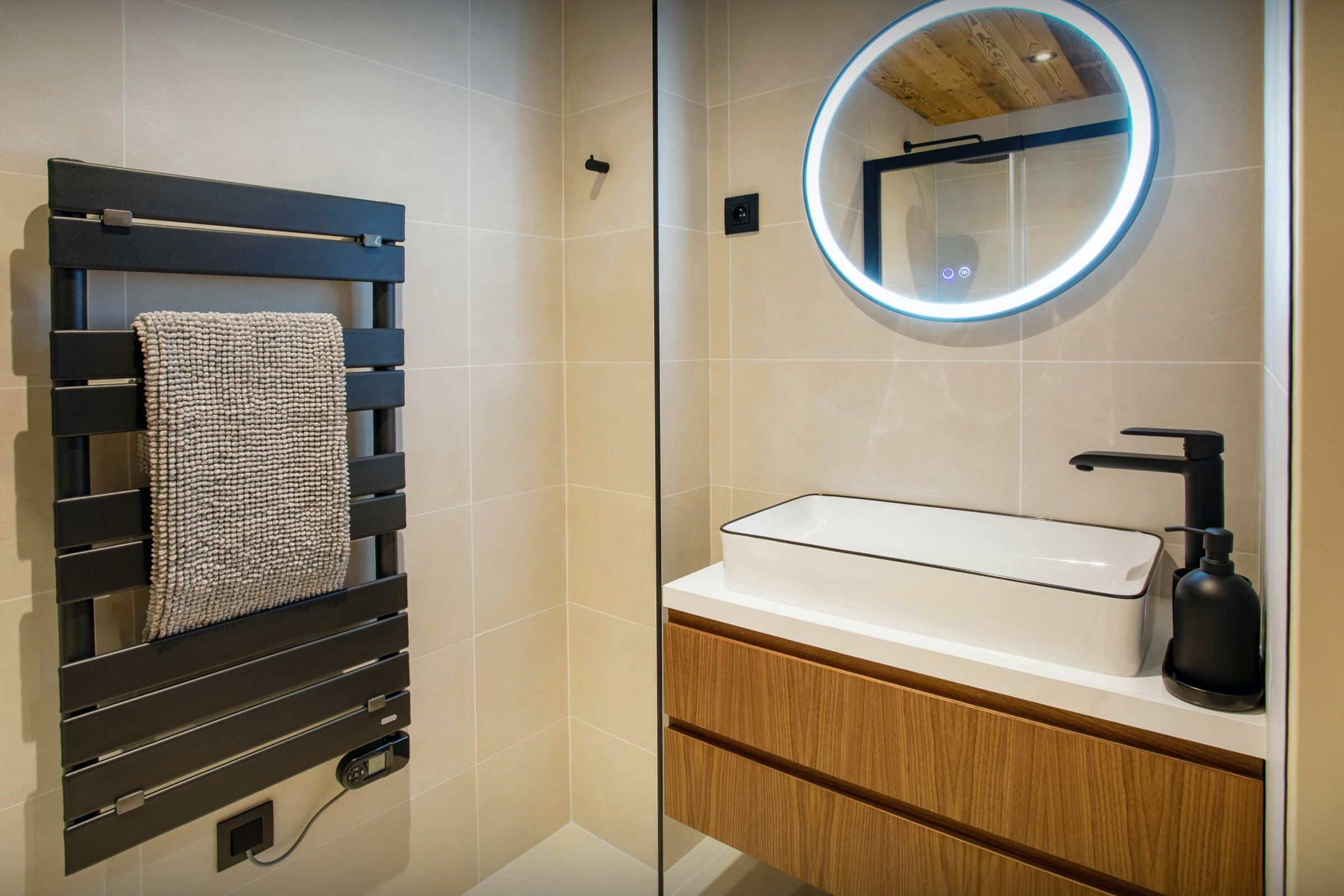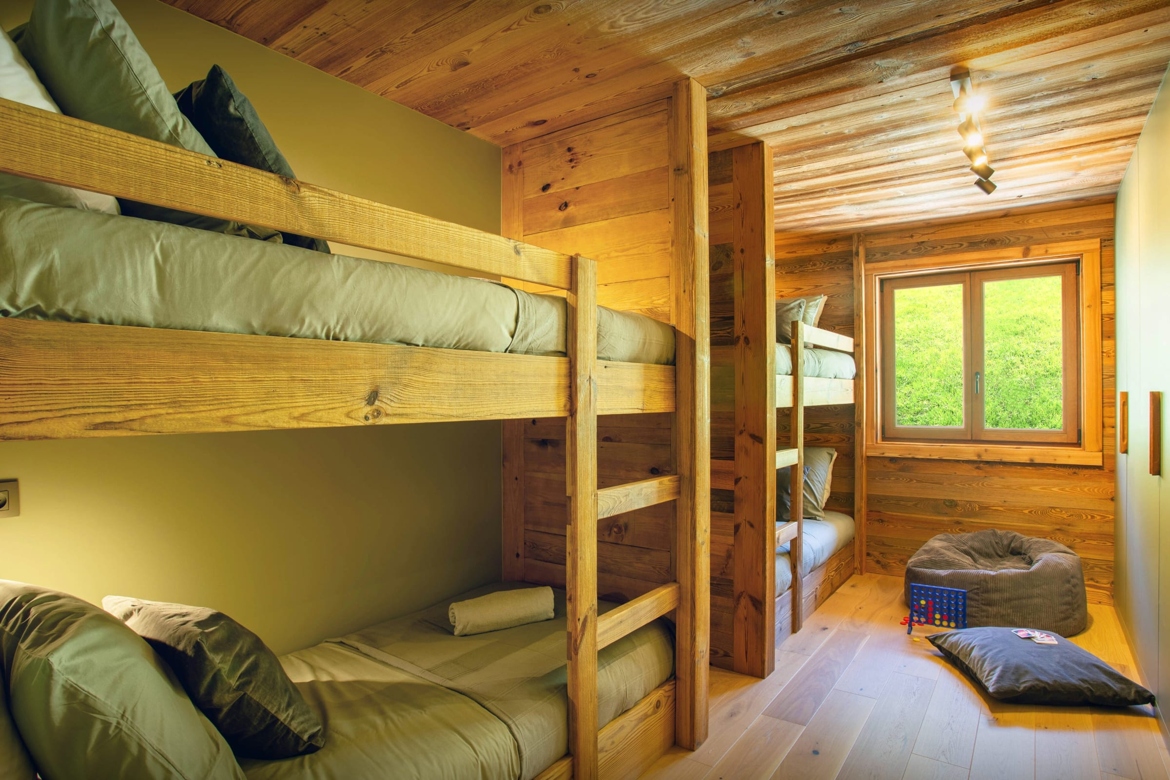 The beautiful living area of Chalet Frontflip invites you to get together for a chat on the squishy corner sofa or enjoy a meal together at the huge dining table. There are three double bedrooms, two of which have their own balconies, and younger children will love the bunk room, which sleeps four.