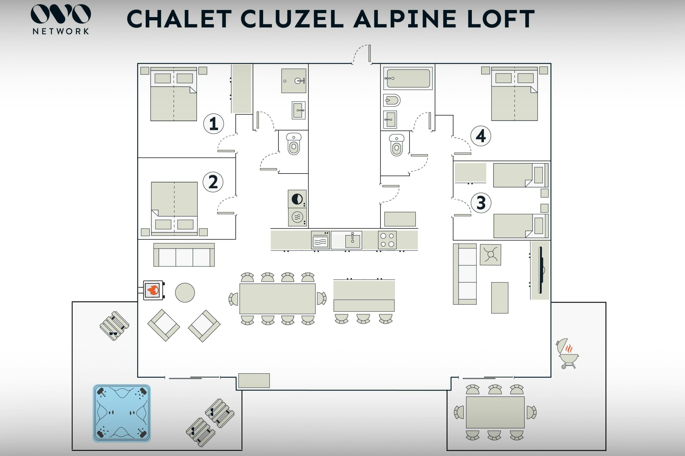 IMPORTANT: out of respect for the occupants of neighbouring flats, the jacuzzi may only be used between 9am and 7pm. Thank you for your understanding. NOTE: Cluzel Alpine Loft is a rental set up in a building of several apartments. It is suitable for family use and not for parties or celebrations, which are not permitted. The 4-star rating corresponds to a capacity of 6 people. However, the apartment can comfortably accommodate up to 8 people.