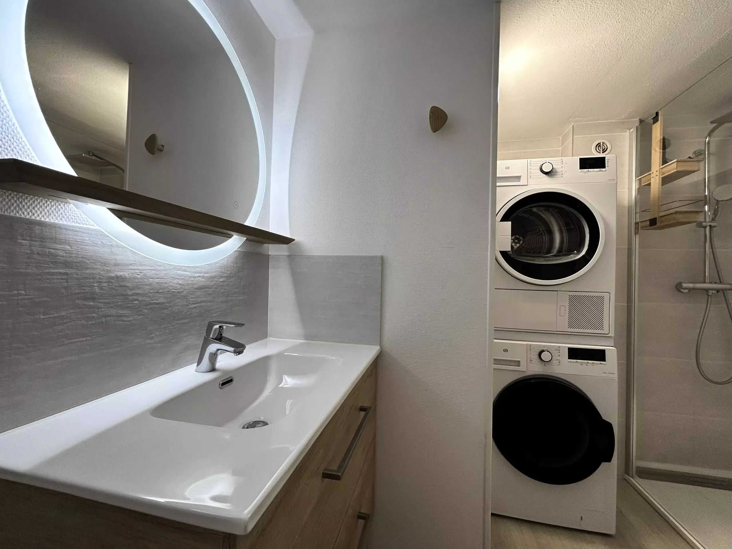 SHOWER ROOM: walk-in shower, sink, washing machine, tumble dryer, hair dryer, iron, separate WC.