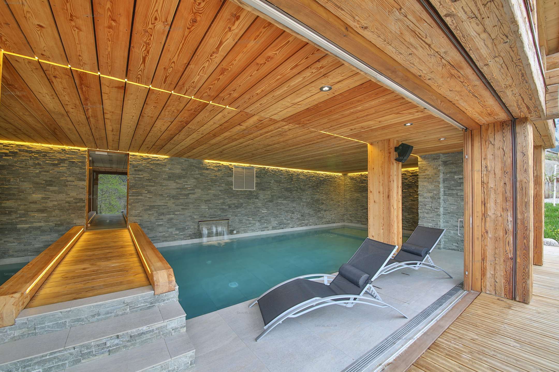 - An indoor swimming pool of 14m x 5m opening onto a terrace facing the Aravis massif