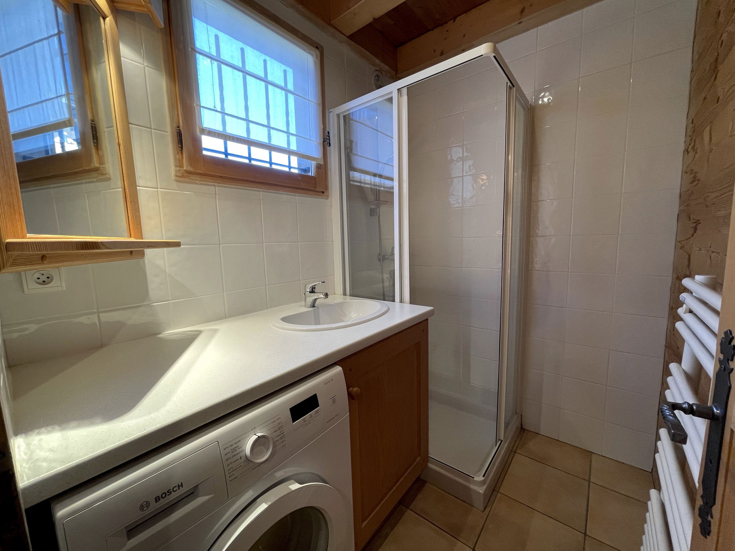 BATHROOM: (tiled) 3 m2, shower, basin, washing machine, towel dryer, window. Independent WC.