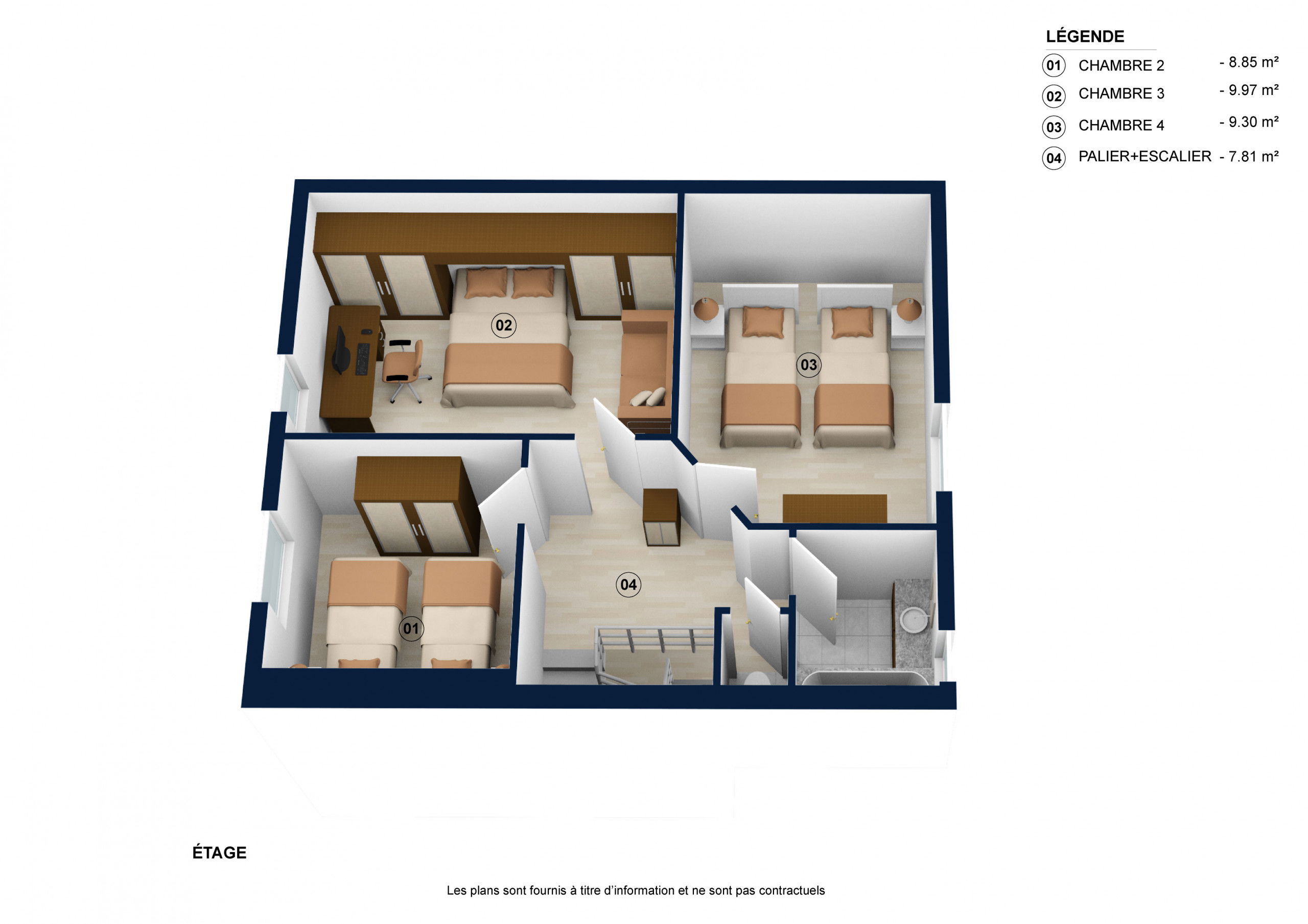 BEDROOM 4: 9 m2, 2 SINGLE BED (90), wardrobe, north window.