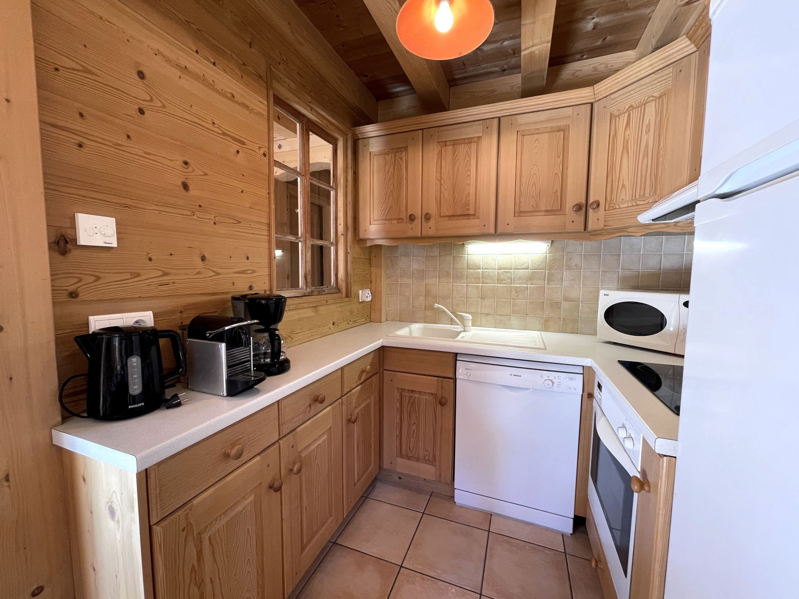 KITCHEN: (tiled) 4 m2, sink, 4-burner ceramic hob, electric oven, microwave, extractor hood, refrigerator with freezer unit (240L), dishwasher, fondue and raclette set, capsule et filter coffee maker, elements with everything you need of the kitchen.