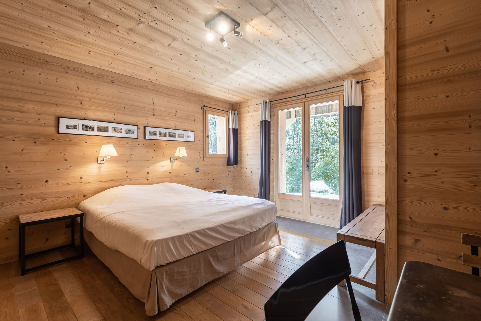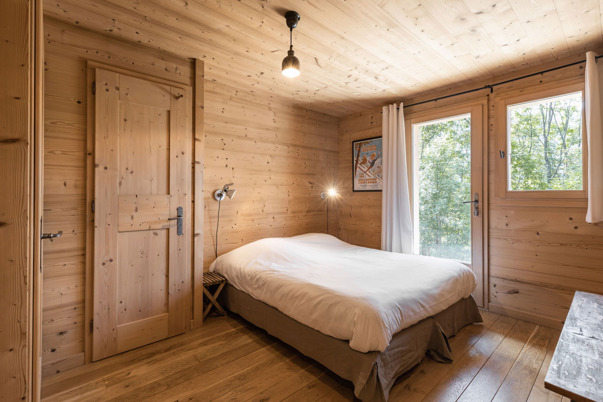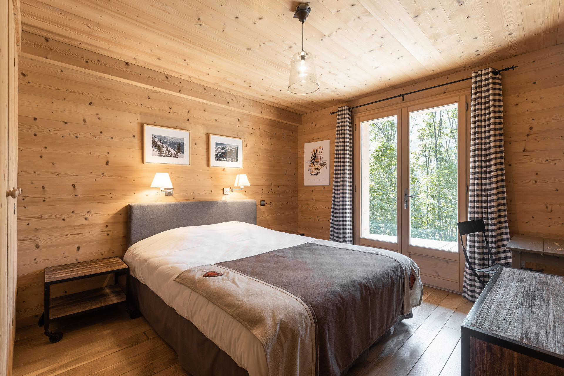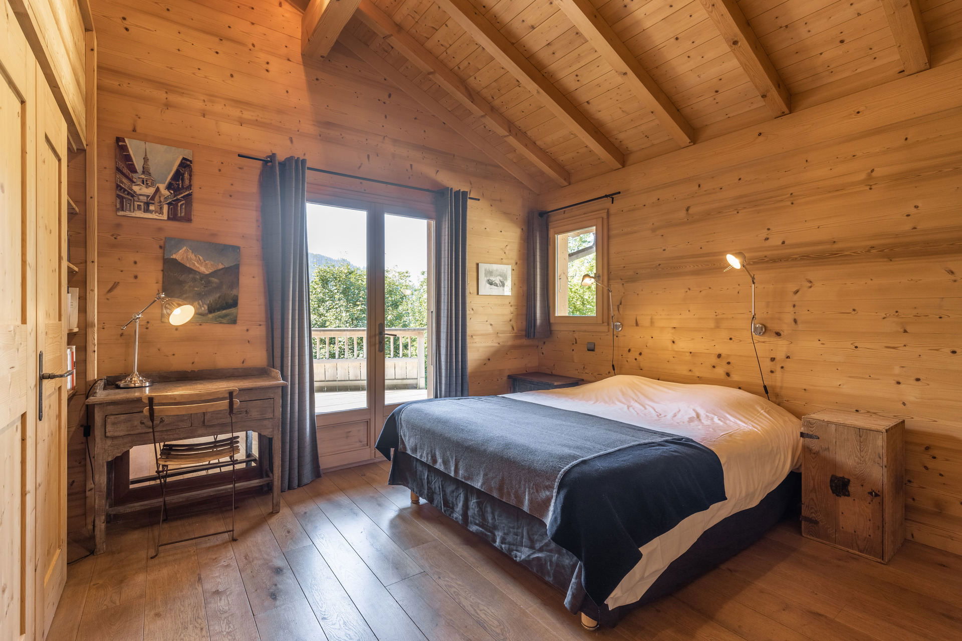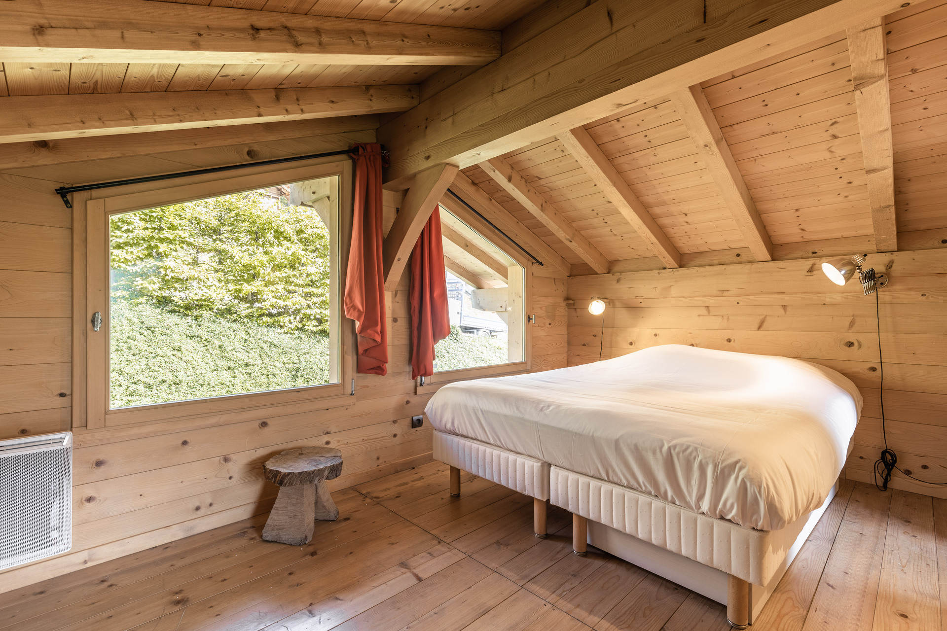 - BEDROOM (19 m²): 1 DOUBLE BED (160), east facing window, next door chalet view, south facing French window, terrace / vegetation / mountain view