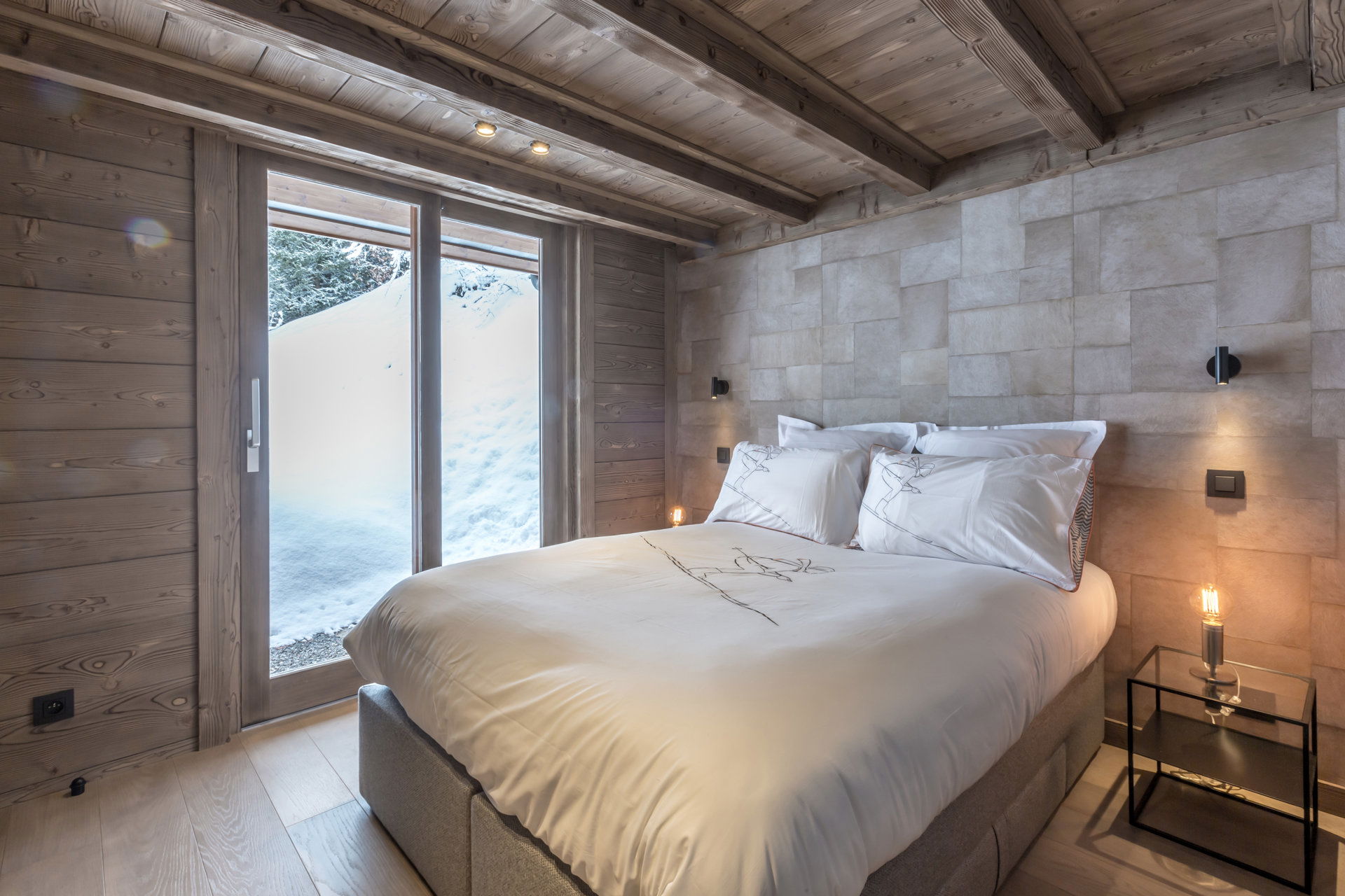 - BEDROOM (18.11 m²) : 1 DOUBLE BED (160), south-facing window, bay-window + french-window, east facing balcony, vegetation / next door chalet view, adjoing SHOWER-ROOM (5.40 m²) : double bathroom washbasin, shower, TOWELDRYER radiator, WC, north facing window, vegetale wall view