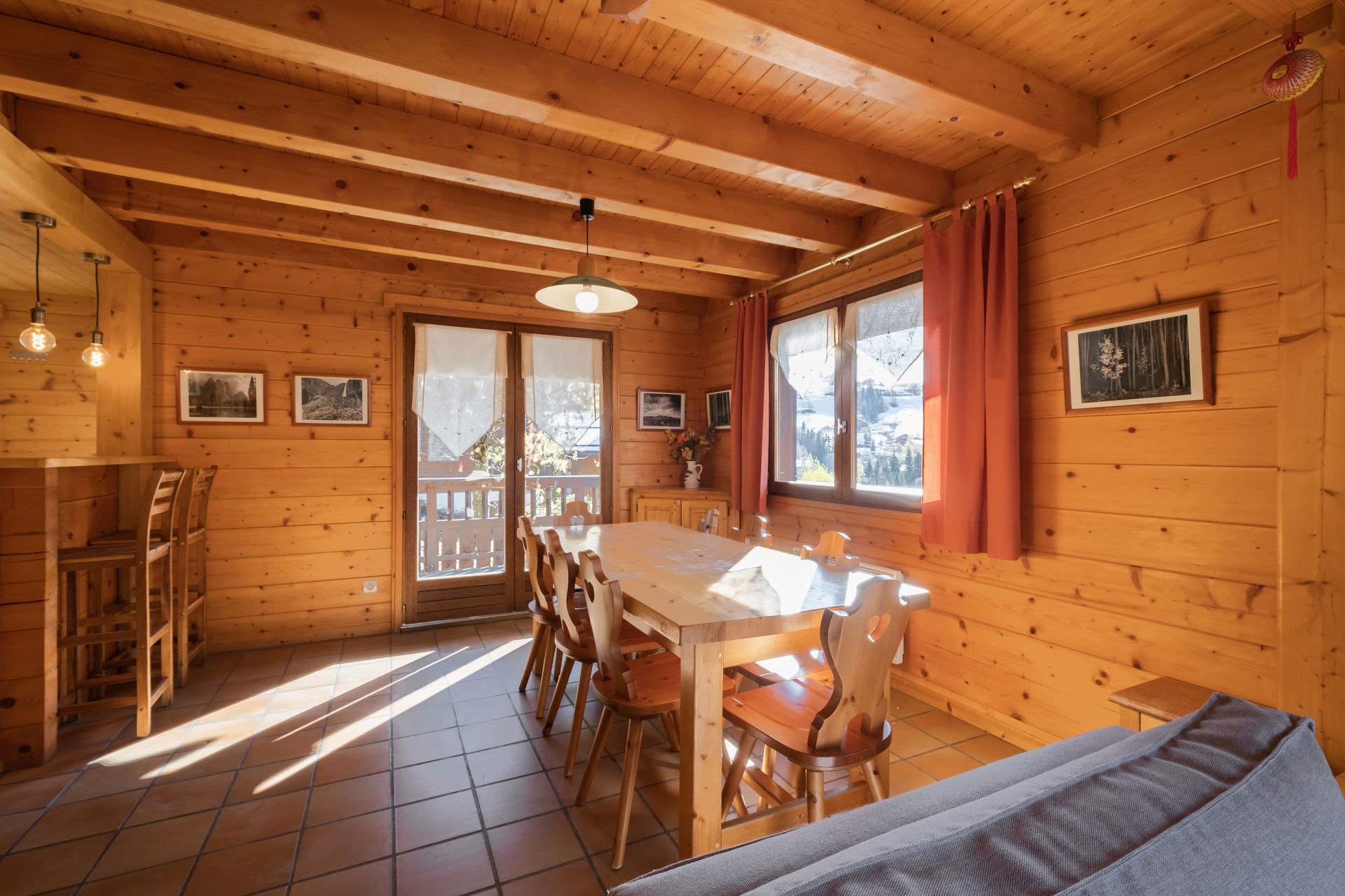Chalet located in the ARAVIS valley, at 2.6 km from the village, at 500 m from LA COMBE DES JUMENTS chairlift and at 800 m from L'ETALE Telemix. Bus stop at 30 m.