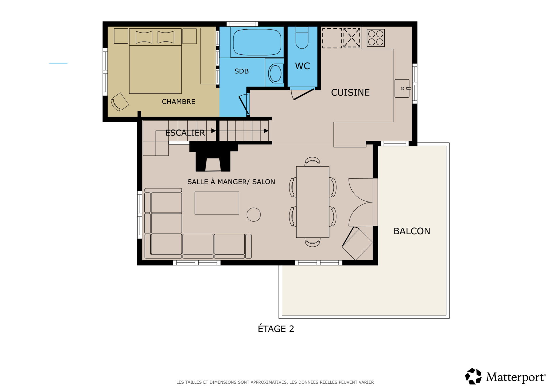 - LANDING (5.95 m²) : west French window + terrace access, next door chalets / mountain view