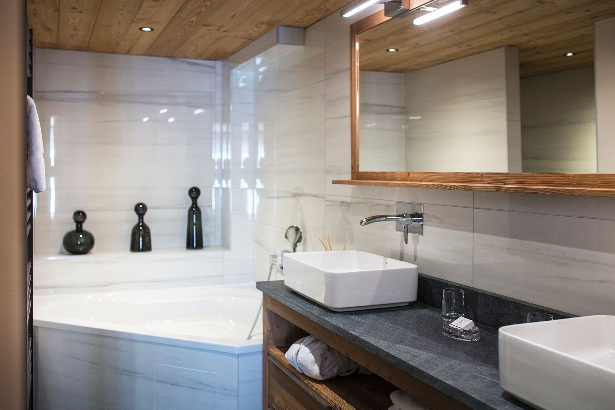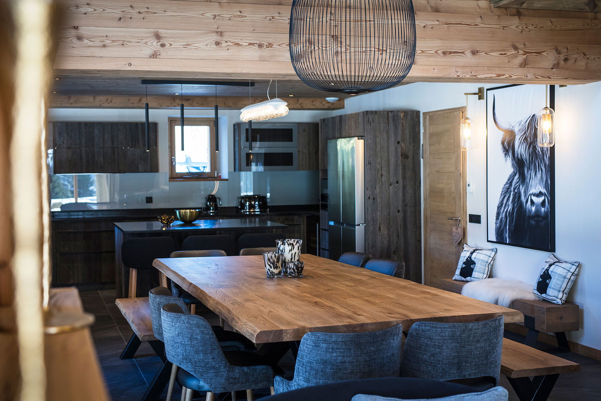 The warm and modern decor elegantly combines the characteristic elements of traditional Savoyard chalets with touches of modernity.