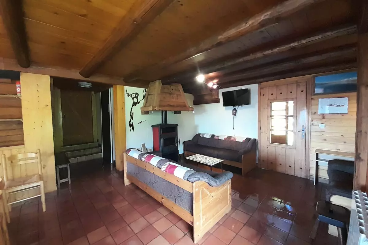 The chalet, classified *, has four bedrooms: two bedrooms with a double bed (140x200), one bedroom with two single beds and a dormitory with six single beds (90x190), a large bathroom (2 toilets, 2 sinks, 2 shower cubicles), a fitted kitchen, a dining room and a living room with a fireplace available.