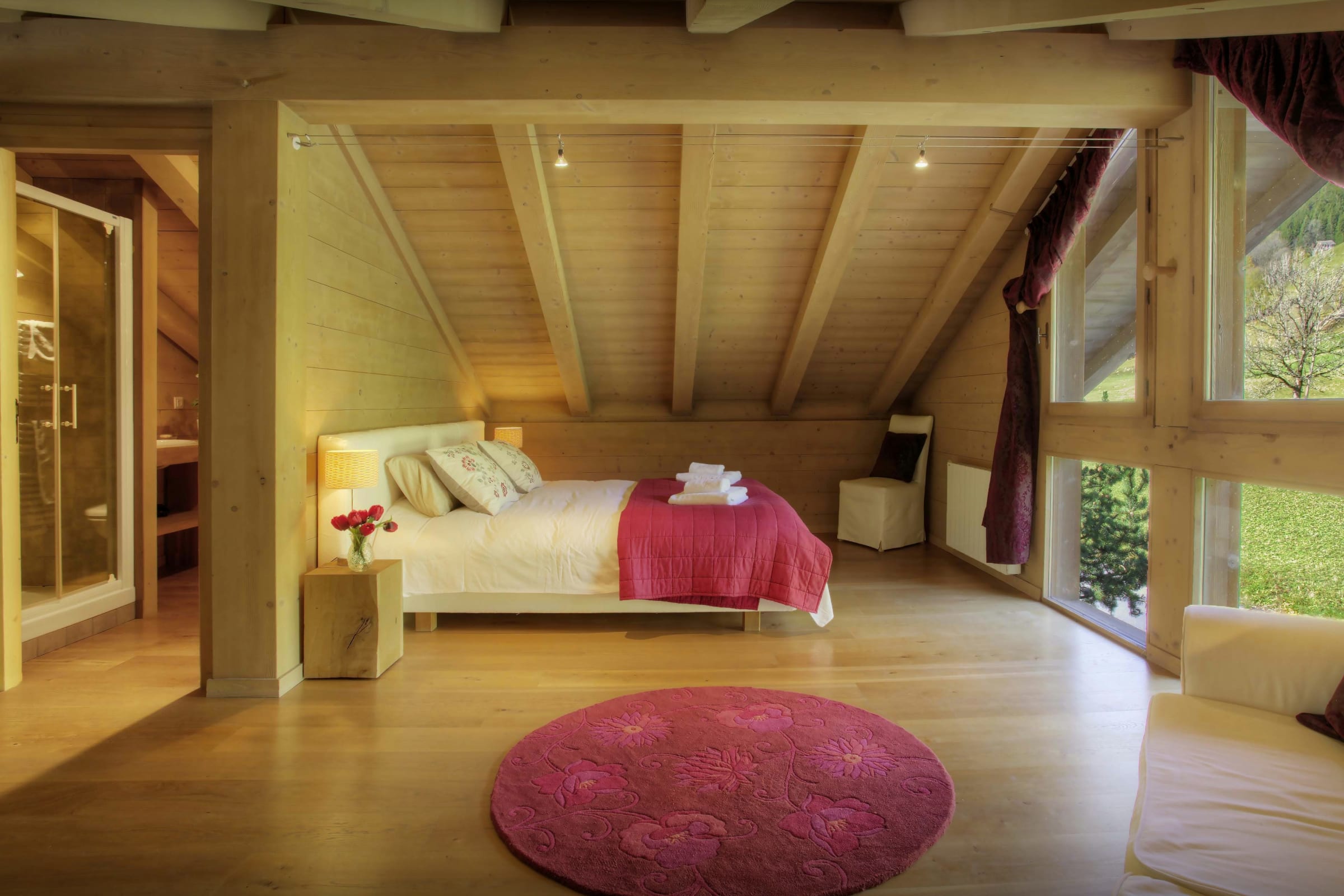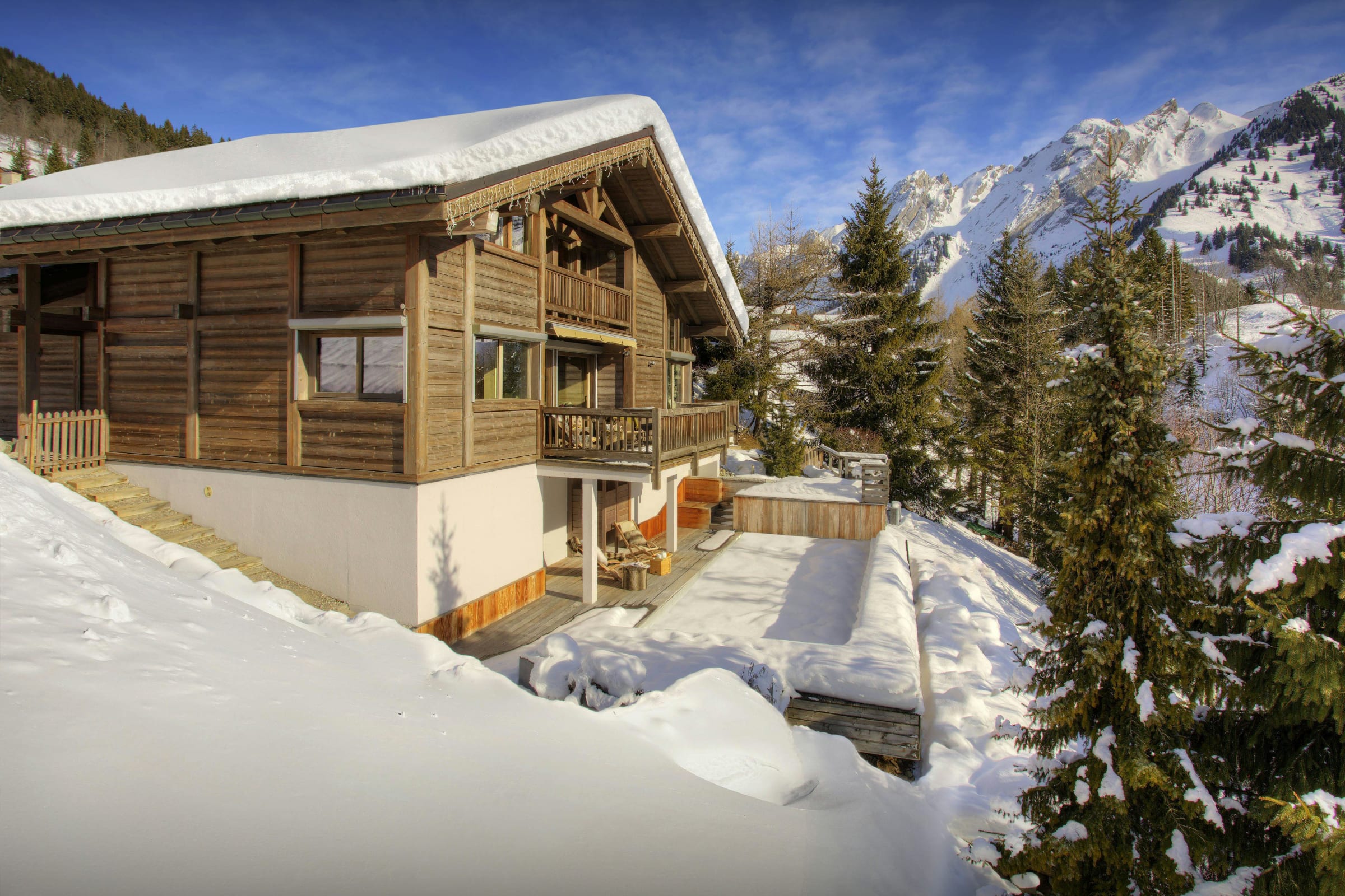 We love this property for its amazing outlook over the popular La Balme ski area, and the relaxing nordic hot tub, which is available all year round, from where you can enjoy amazing sunsets.
