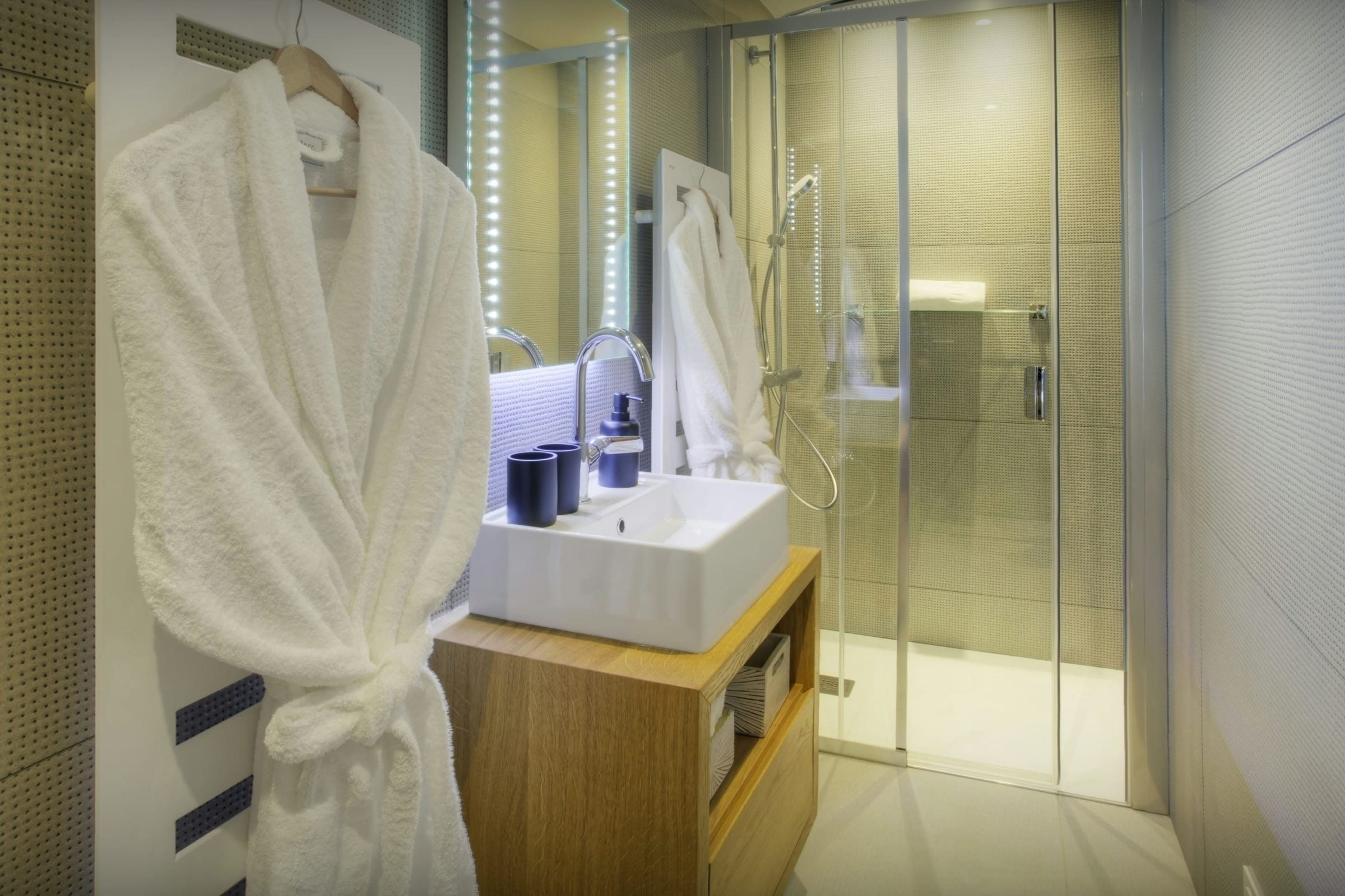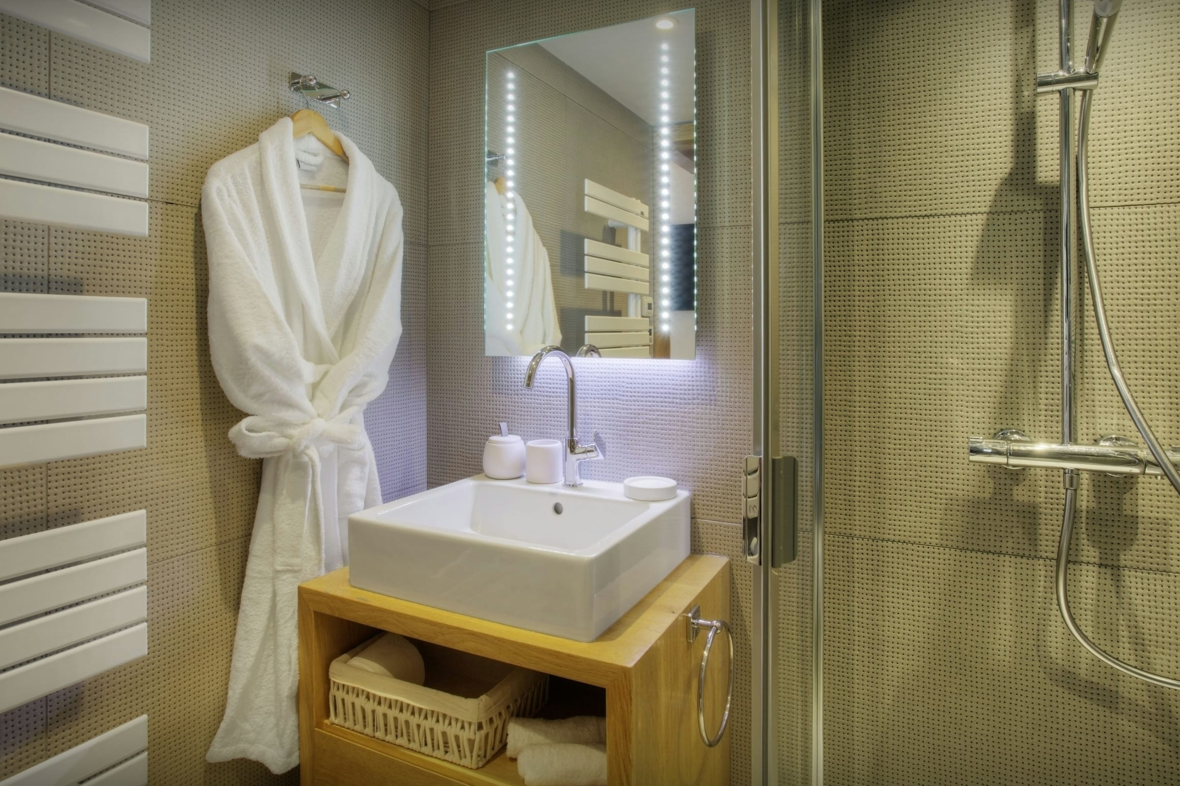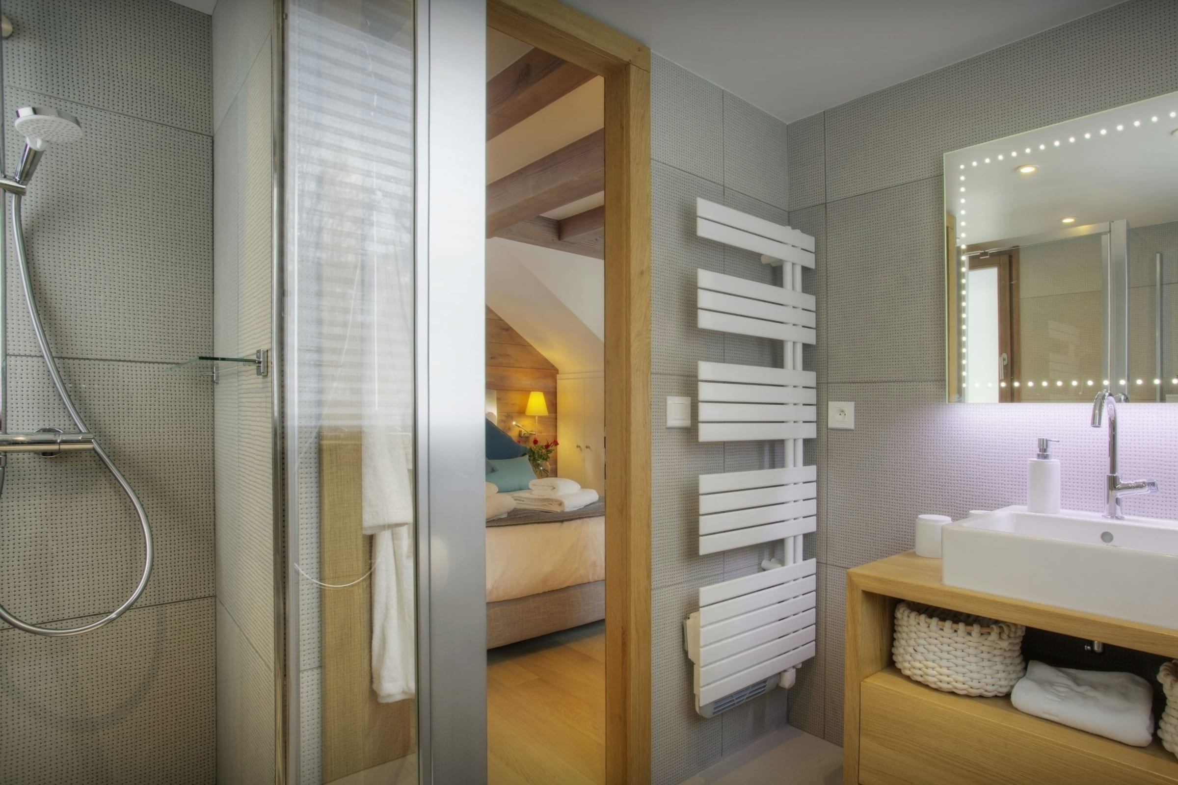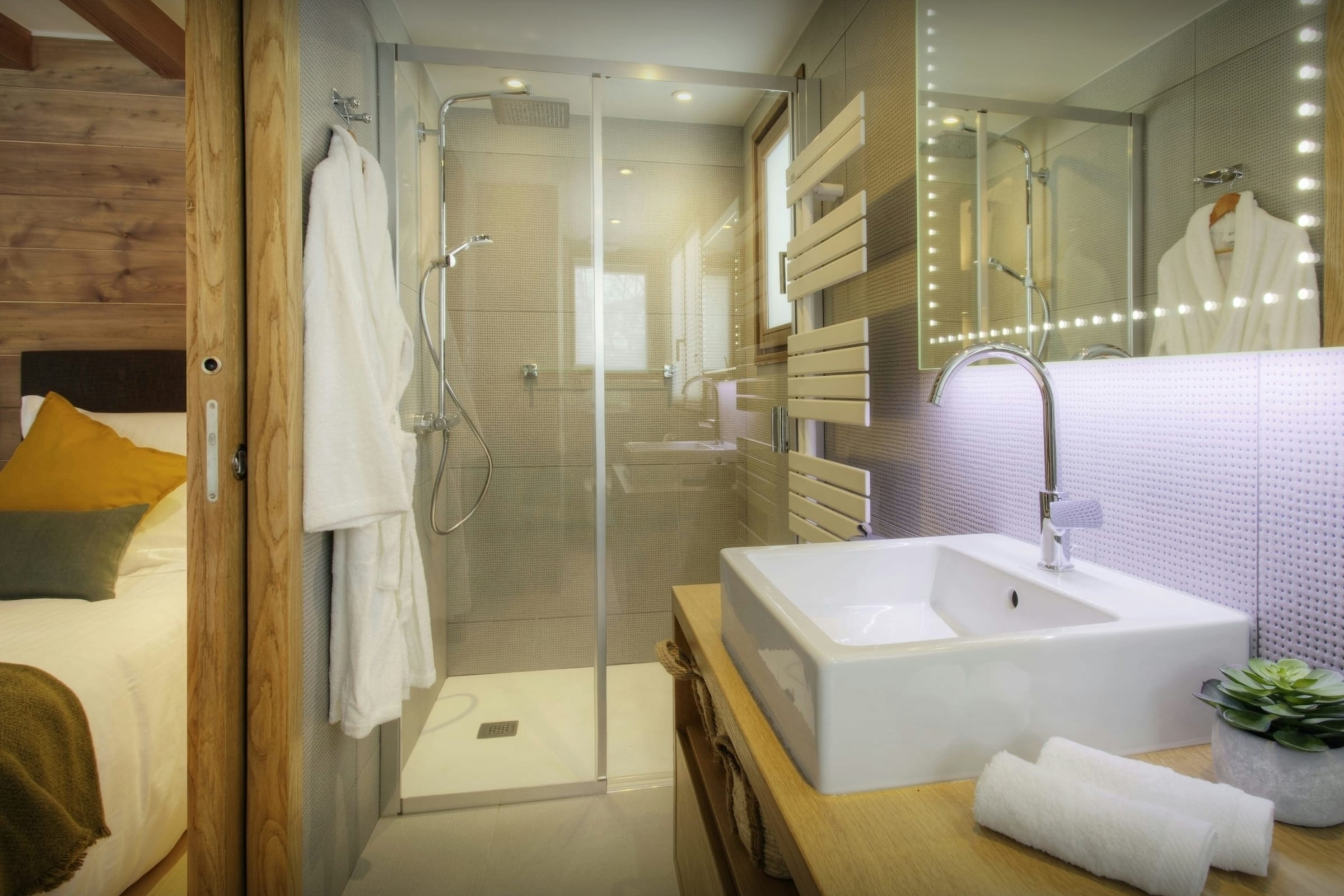 The chalet has five shower rooms, three of them en suite, and although there are no baths, the sauna and hot tub make great places to relax and soothe any aching muscles.