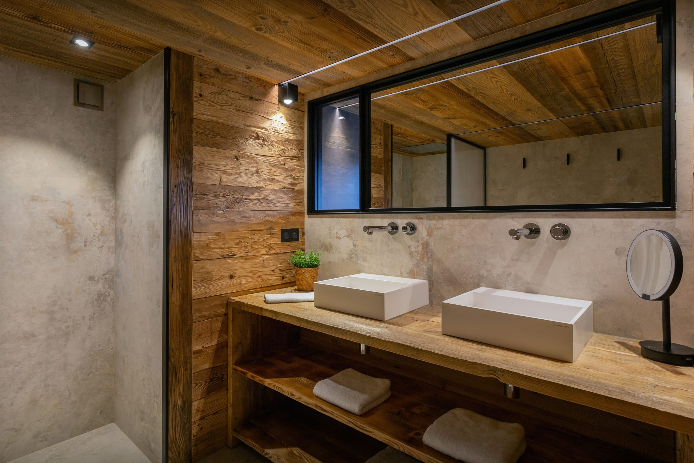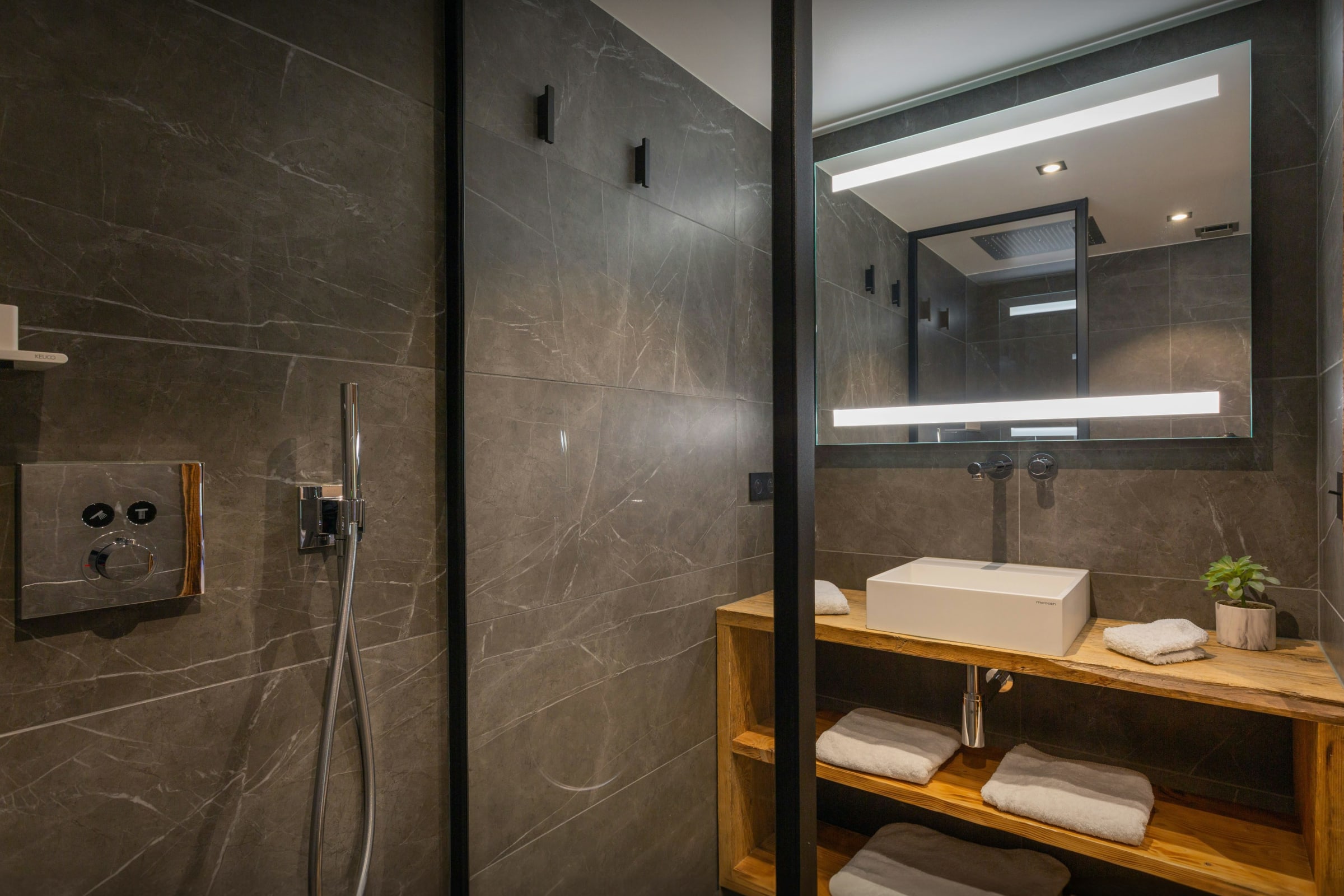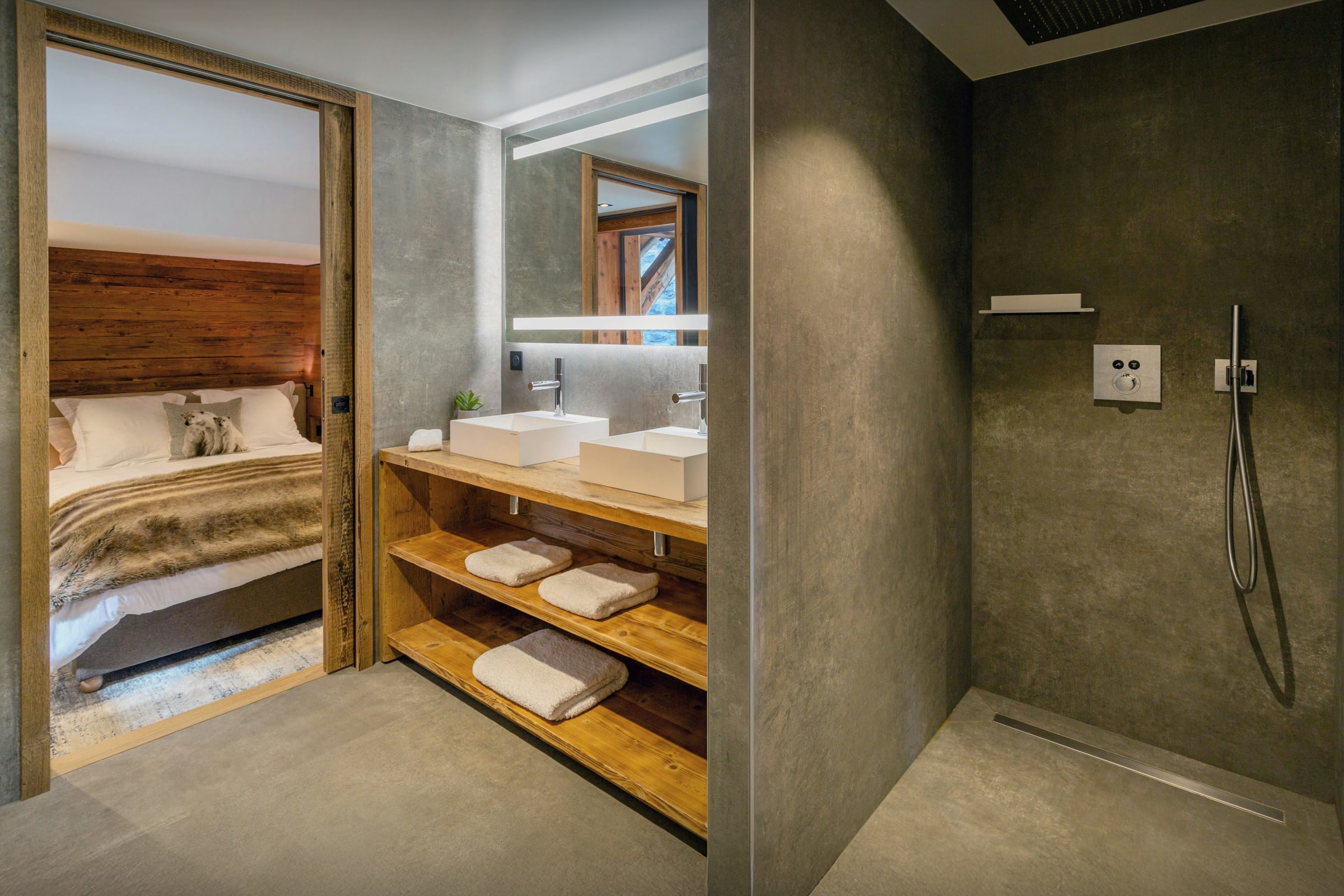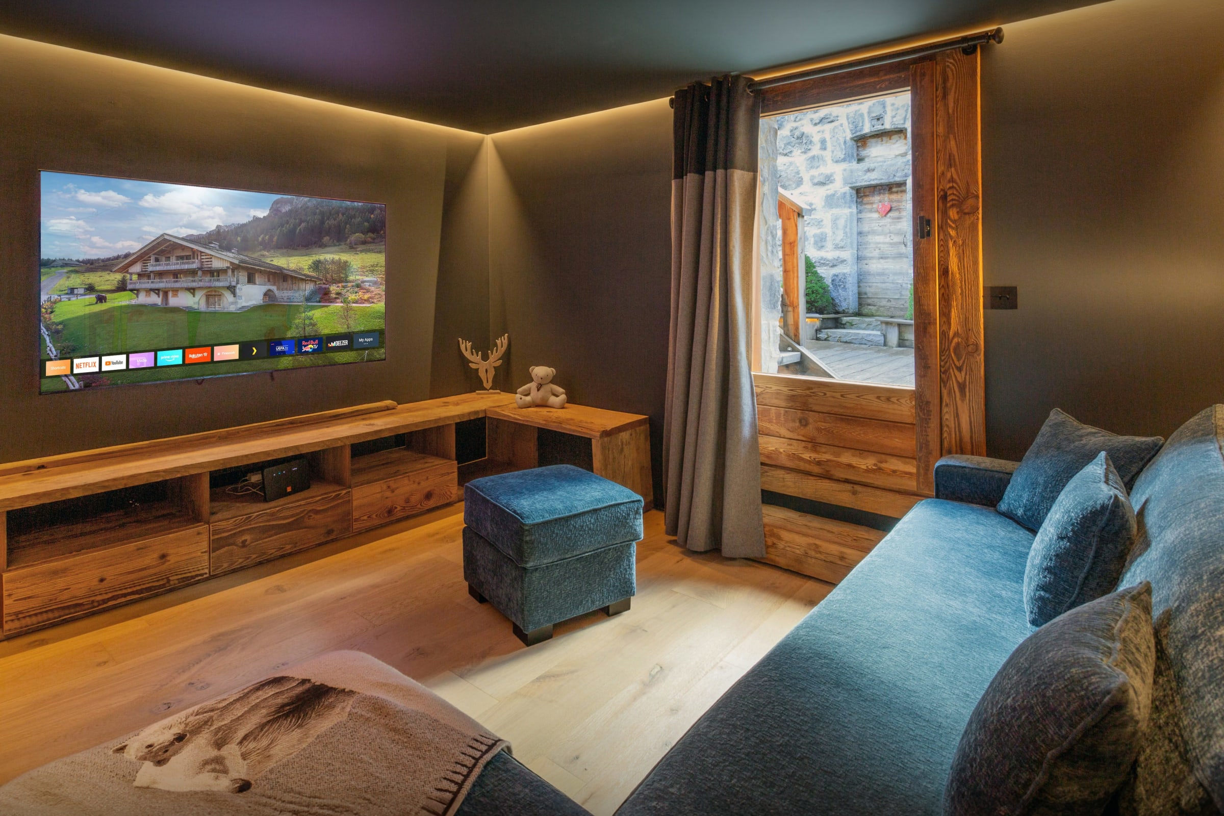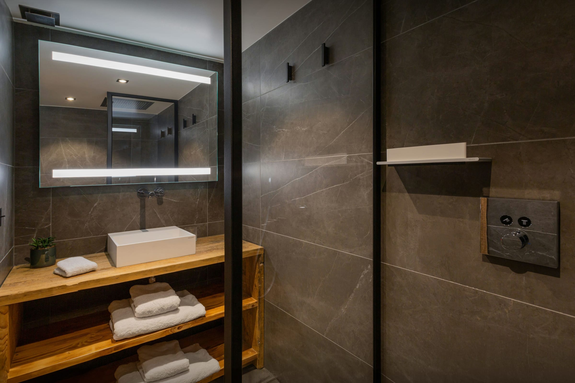 Five of the six bedrooms are on the ground floor. They all have large double beds, and three of them also have their own shower rooms and access to the balcony. The remaining two bedrooms are connected by a shower room. You'll also find a TV room on this floor and a laundry/ski room with a heated boot rack.