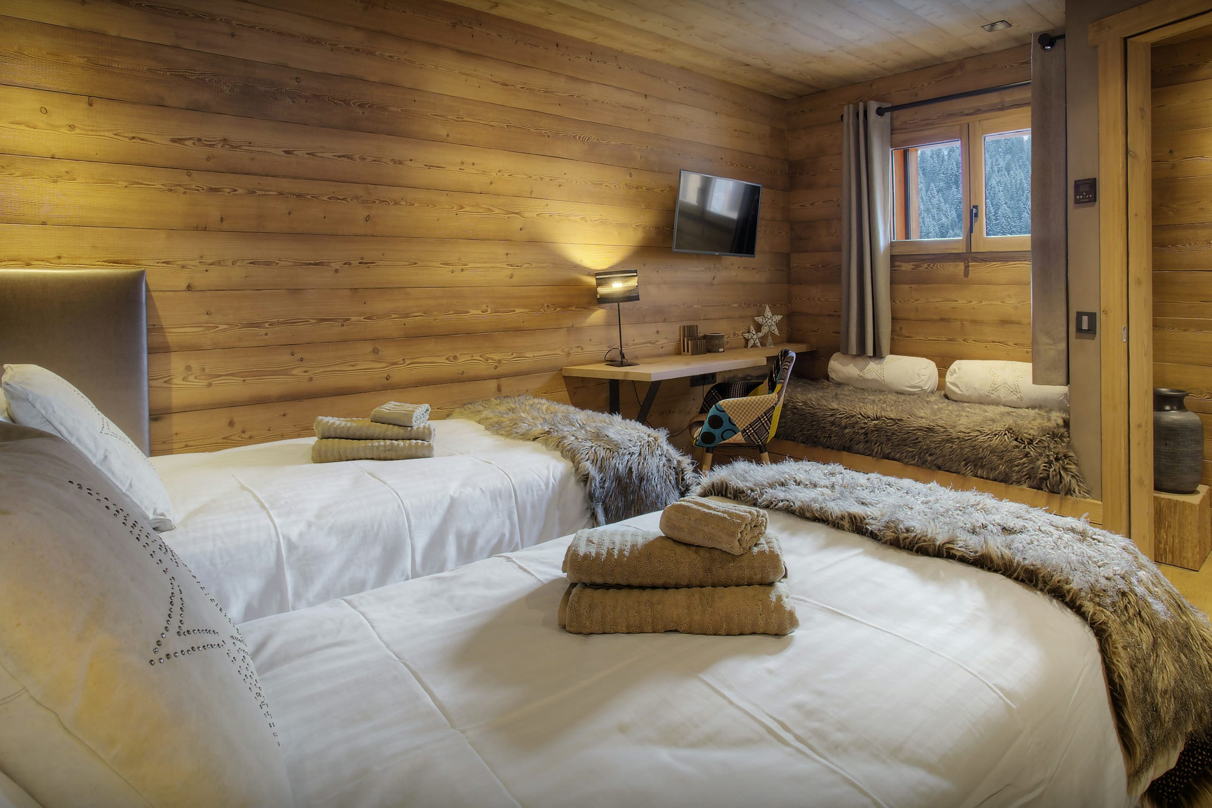 Built on a slope, the chalet has little accessible green space. However, two large terraces make the most of the superb view. One terrace is a great place to relax and enjoy the view from the Jacuzzi, while the other is great for sharing a meal with friends.