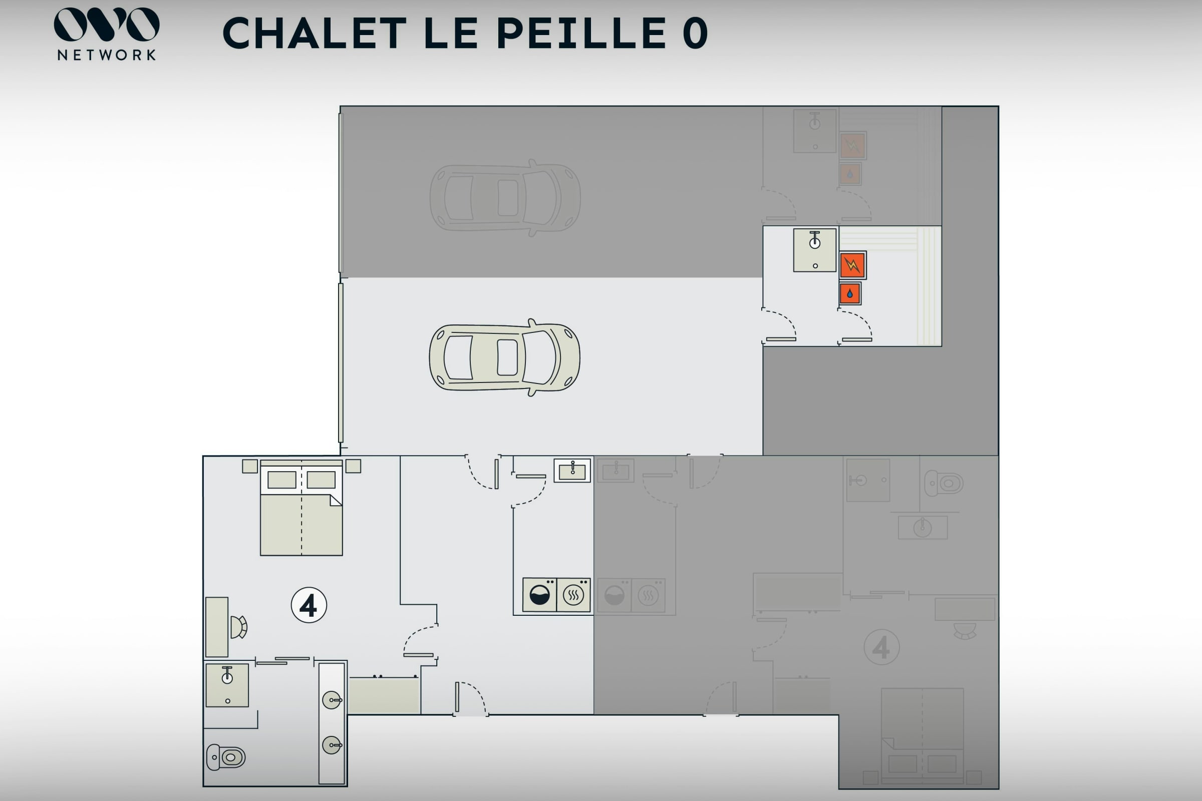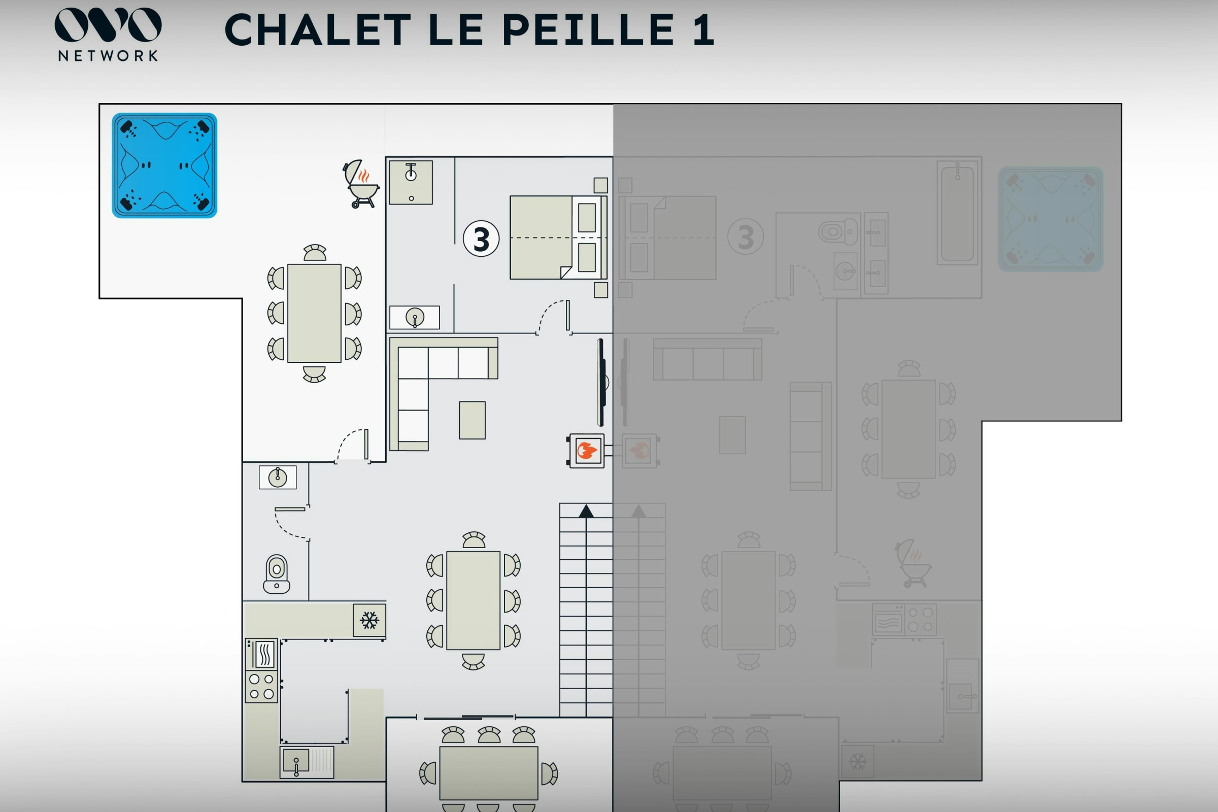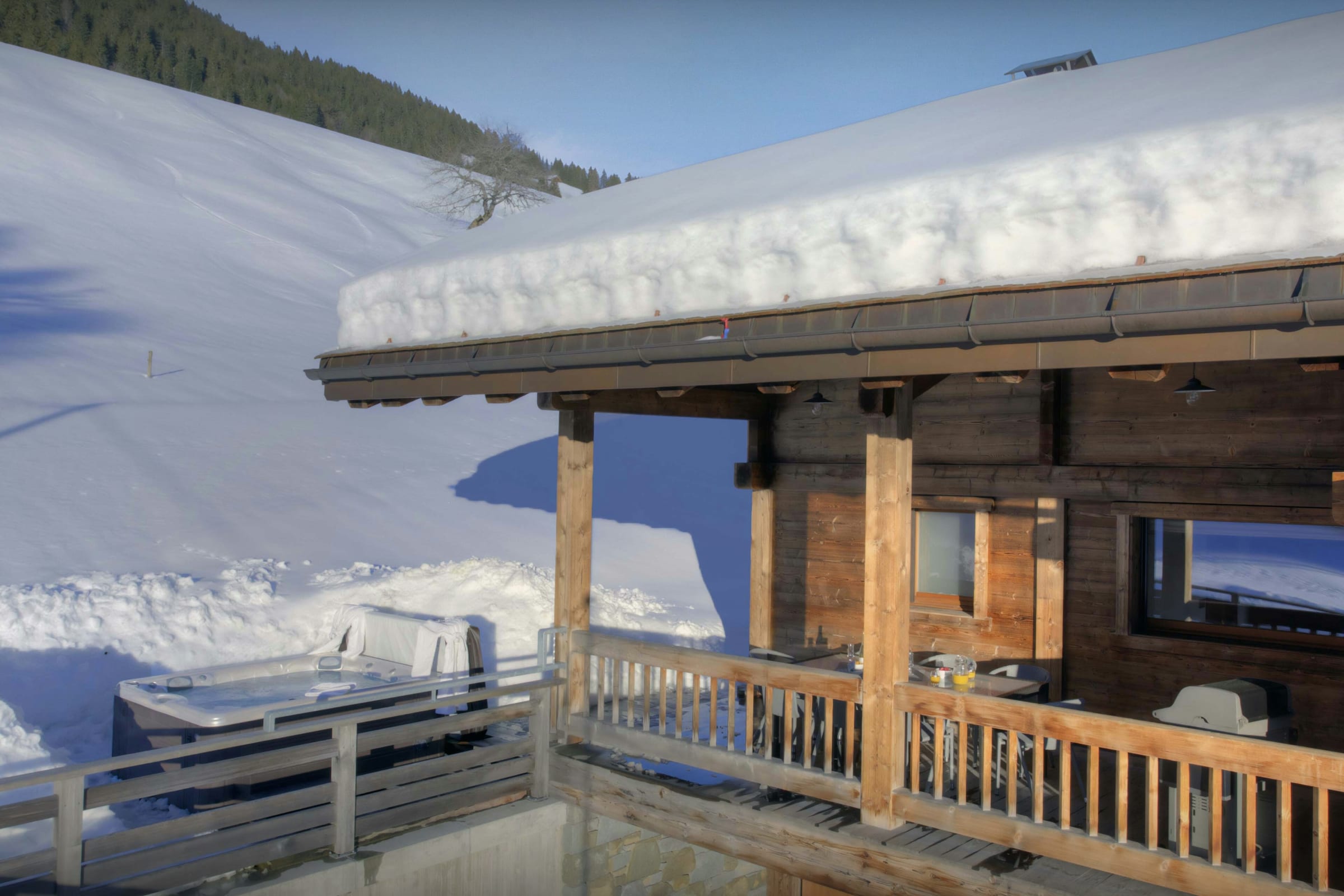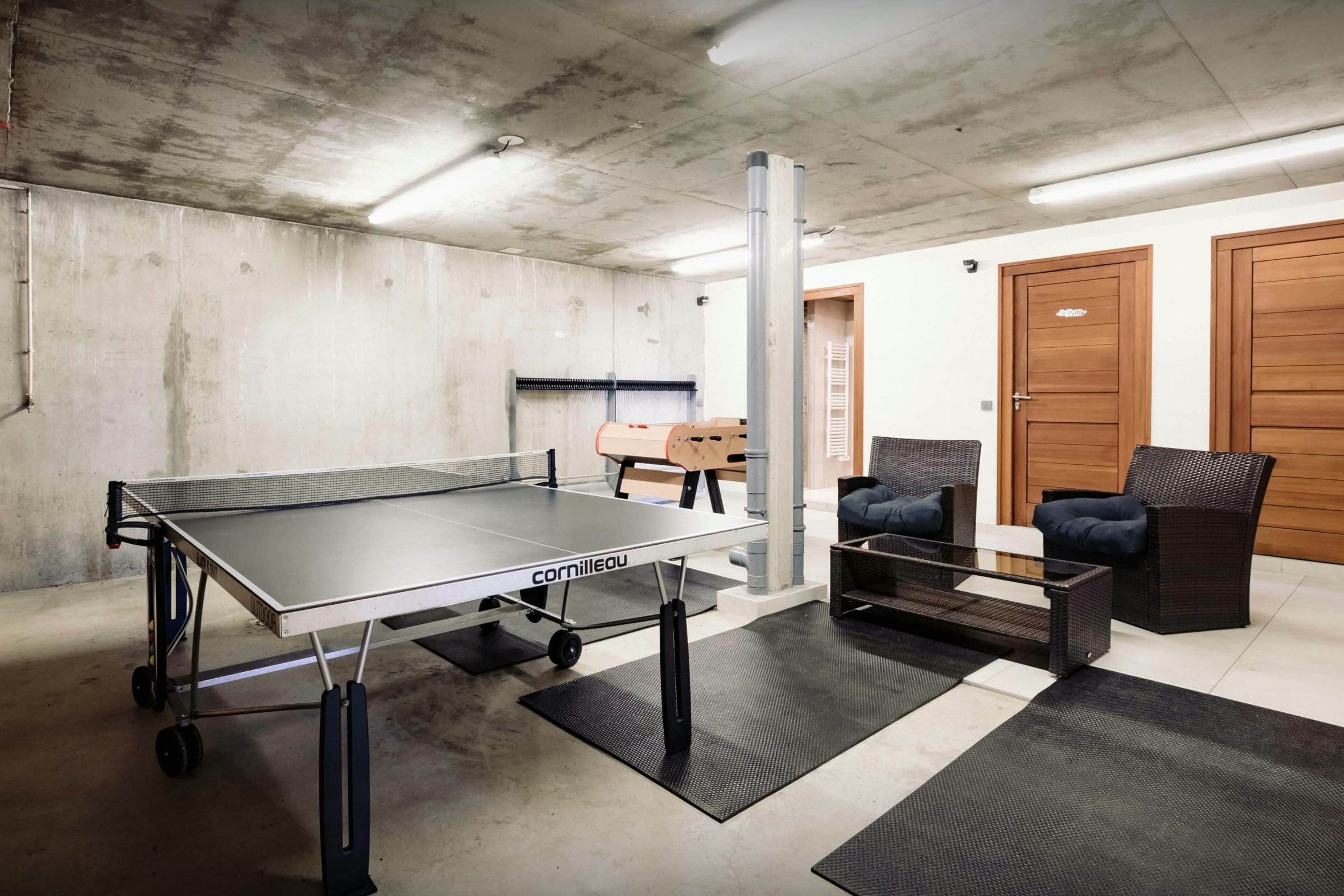 Please note this chalet is a semi detached property, particular attention was paid to high quality sound proofing during construction. For electric vehicle owners, a flat-rate fee of €50 will be charged upon arrival at the chalet to cover the cost of the electricity needed to recharge the batteries. The access to the separate hammams for each apartment is via the garage. Please note that the maximum capacity of the chalet is 8 people + 1 baby sleeping in a travel cot. This number cannot be exceeded for safety and insurance reasons. The table football, ping-pong table and deck chairs are not available in winter. The table football and ping-pong table are located in the garage and for the use of both properties. As part of a responsible approach to energy management, please ensure that lights and electronic devices are turned off when not in use.