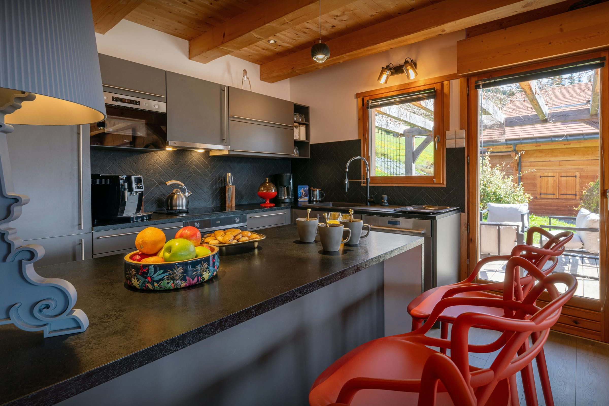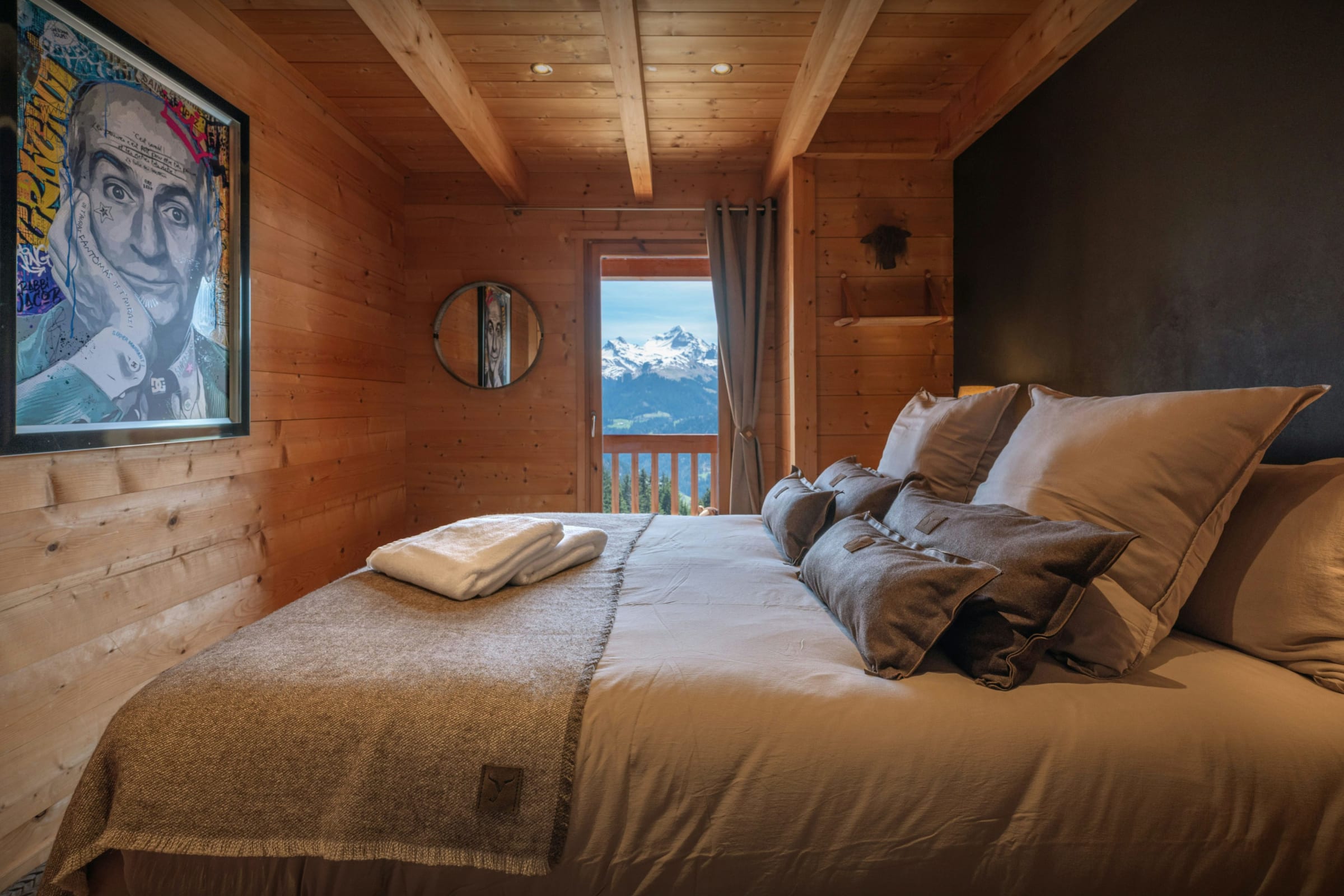 We love the quirky and cosy decor at Chalet Sivara - the unusual light displays, the modern artwork and the custom-built furniture, including the clever TV cabinet! The well-equipped kitchen has everything you need to cook for your group and the chairs at the dining table are so comfortable you could be there late into the evening. But if you do decide to move into the seating area, you'll find it cosy and warm, with a woodburning stove and plenty of cushions to sink into.